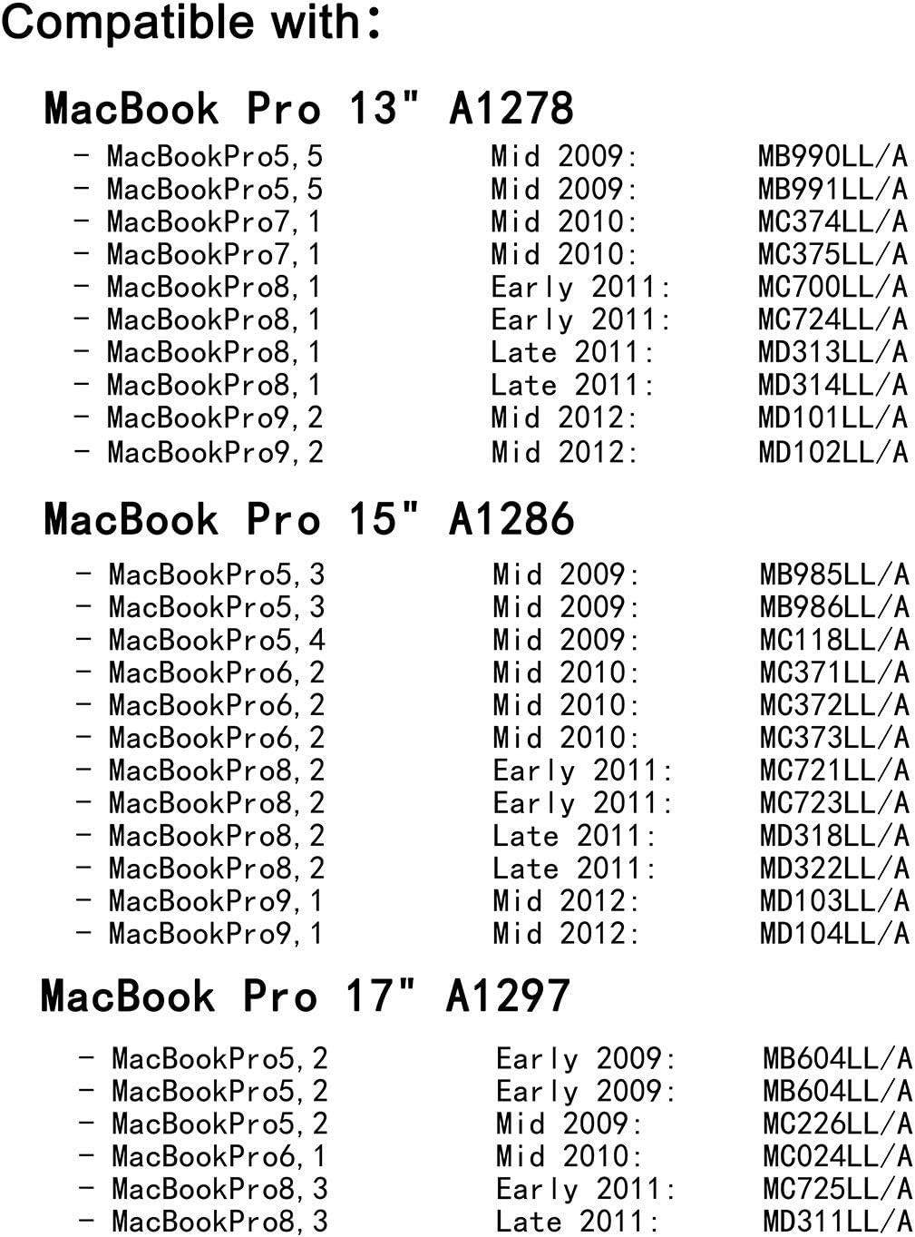 Item model number: for MacBook Pro 13" 15" 17" A1278 A1286