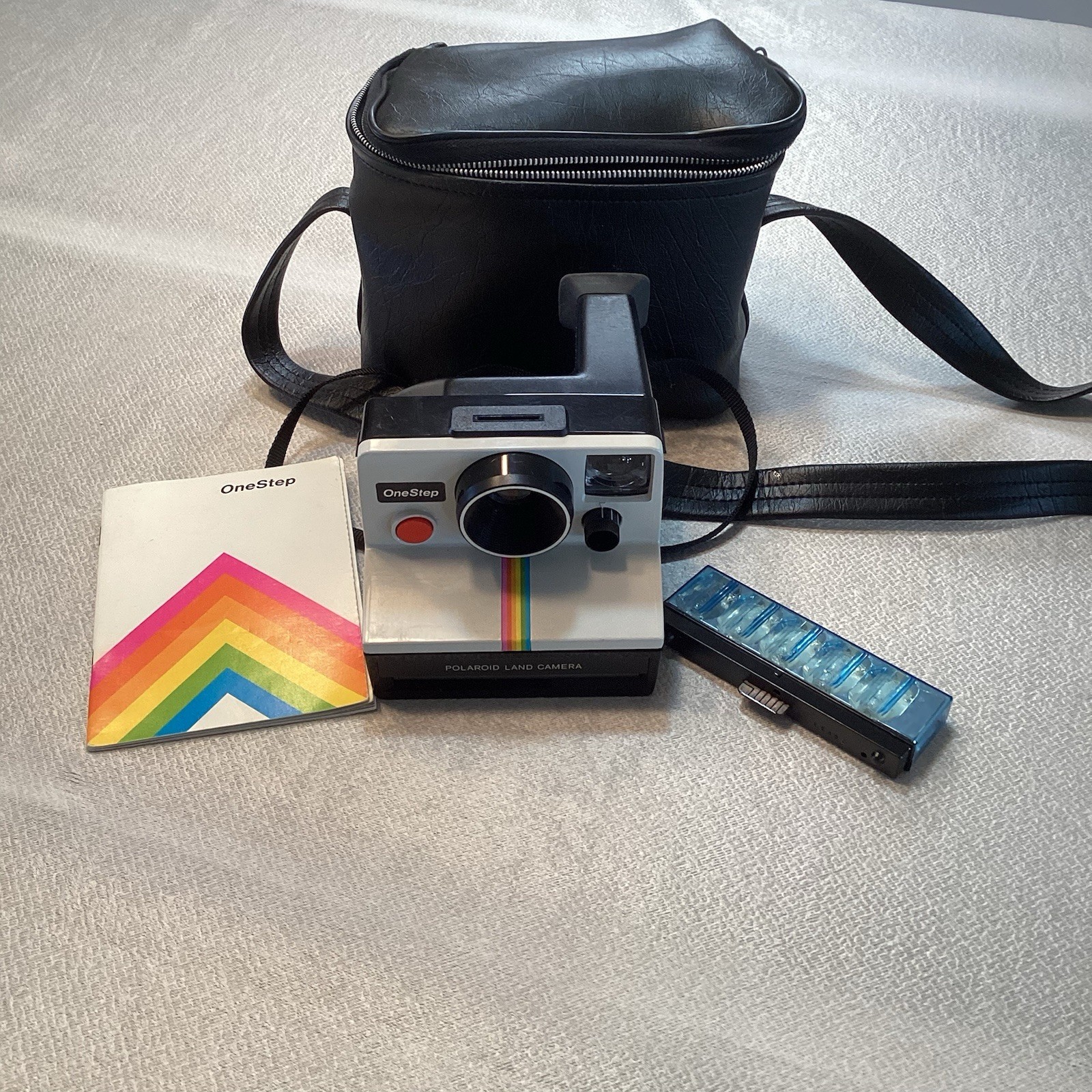 Polaroid One Step Rainbow Instant Camera Vintage with Strap/Case/Manual Untested
