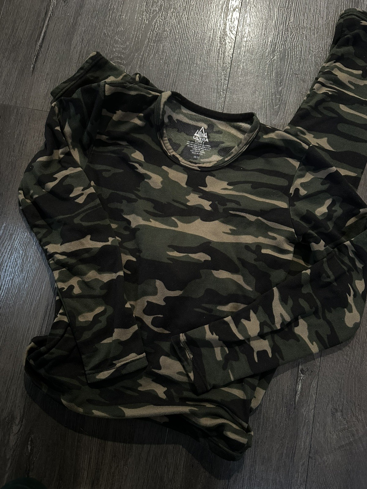 Youth Thermal Base Layer Set Fleece Undershirt/Pants Unisex size 10-12 camo