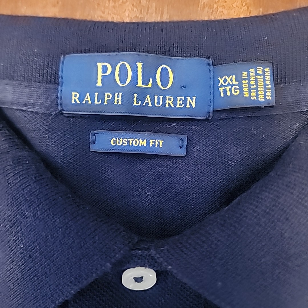 Polo Ralph Lauren Navy Polo Big Red Pony Casual USA Flag Patch Shirt Mens XXL