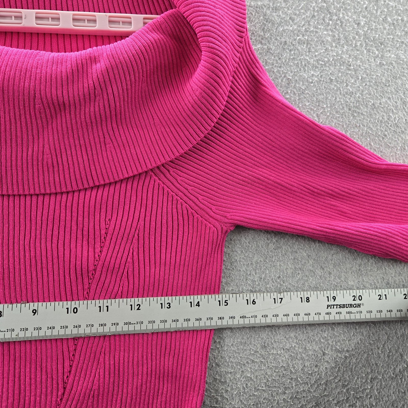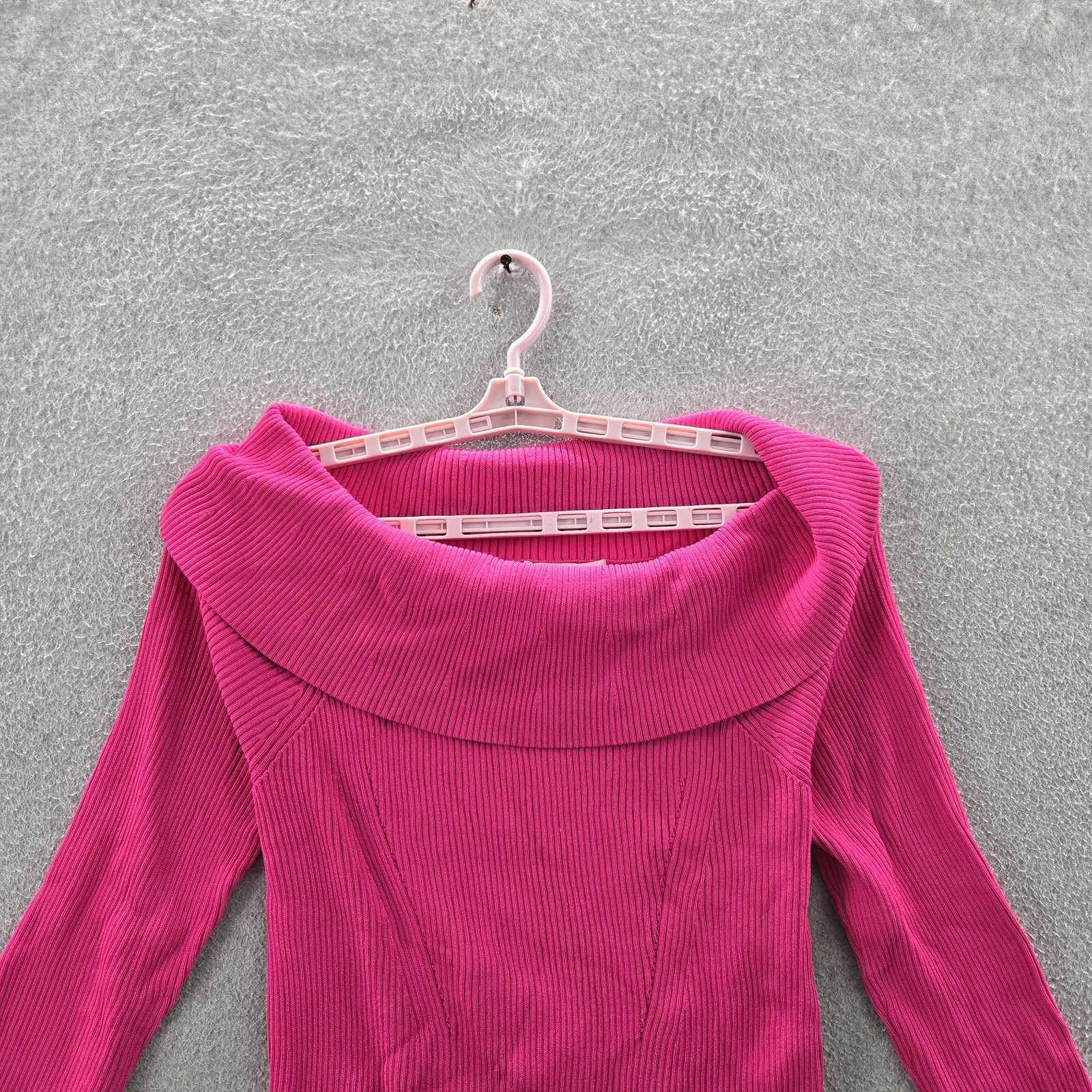 Michael Kors Women Sweater L Pink Long Sleeve Off The Shoulder Rib Knit