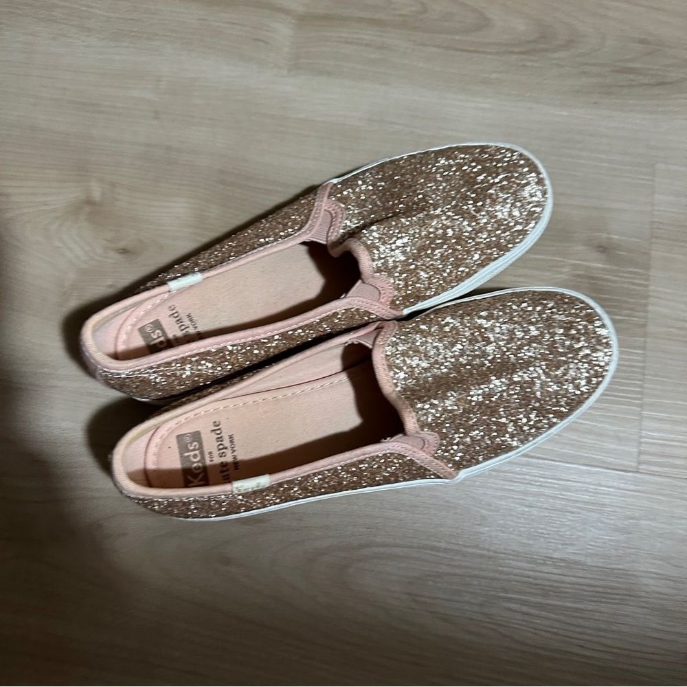 как выглядит Kate Spade Keds Double Decker Glitter Champagne Gold Sneakers 7 фото