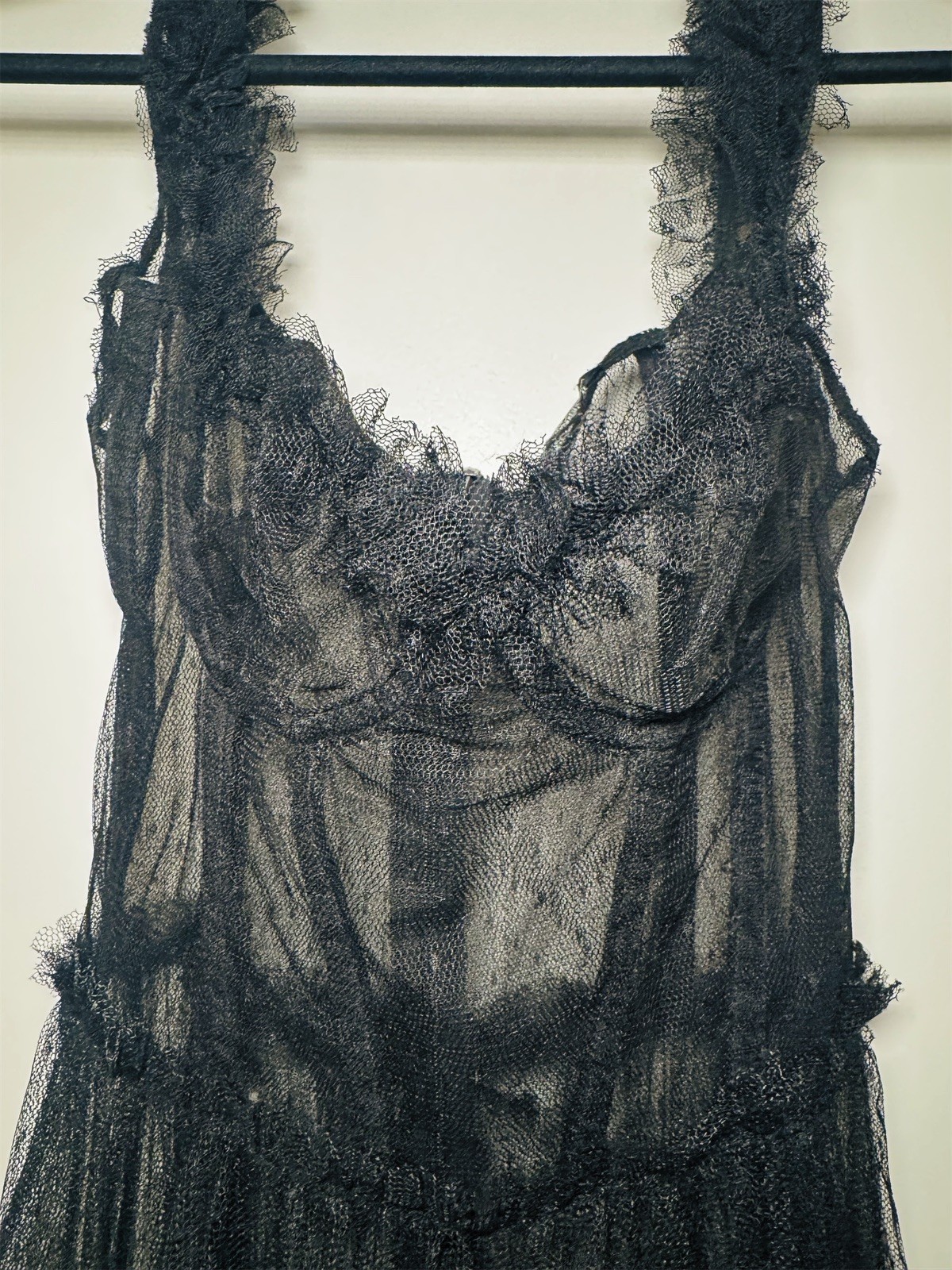 The Midnight Muse Goth Corset Sheer Tulle Slip Maxi Size Small