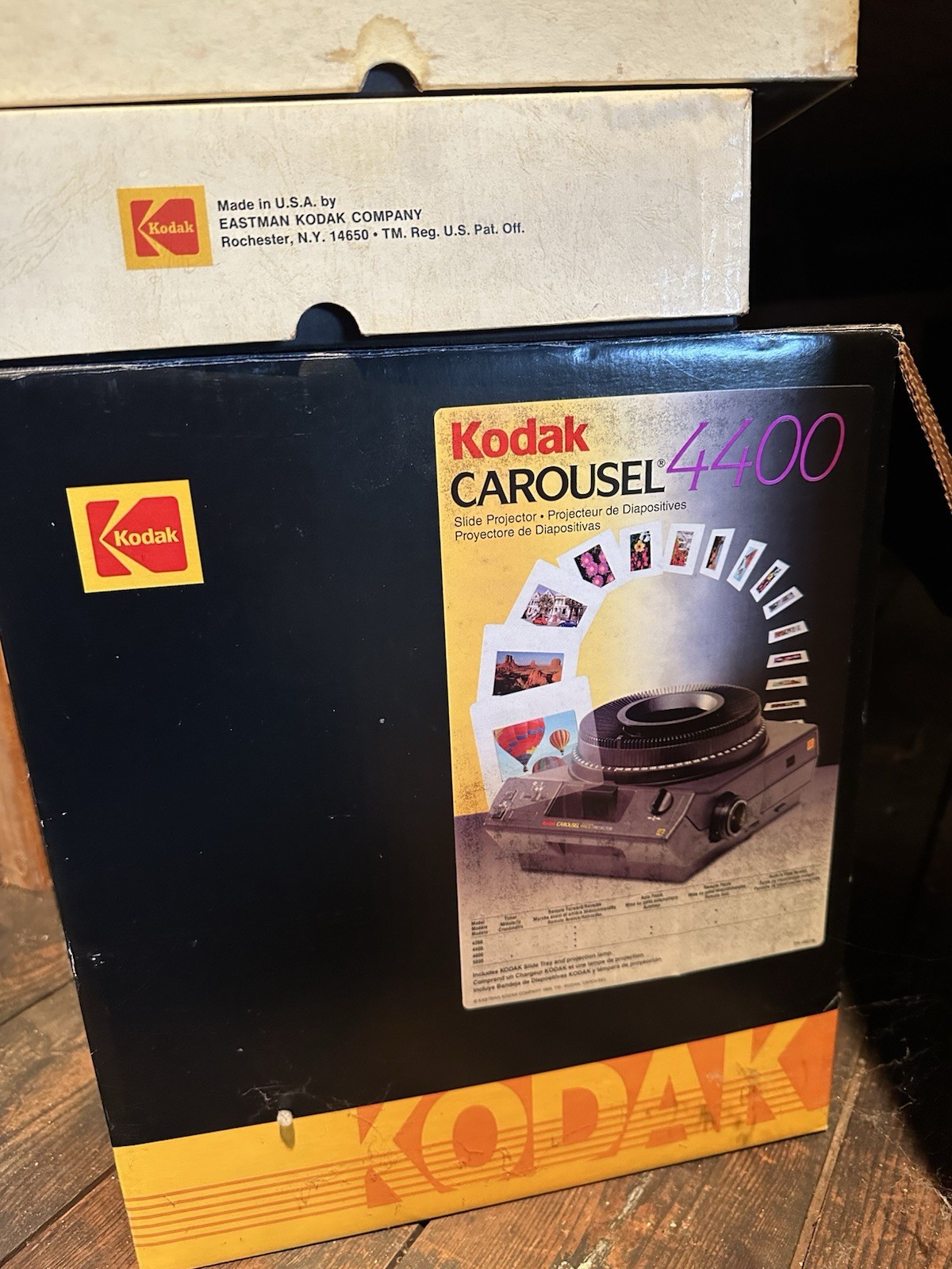 KODAK Carousel 4400 Slide Projector GREAT w/ Box, 5 80-slide Carousel Trays