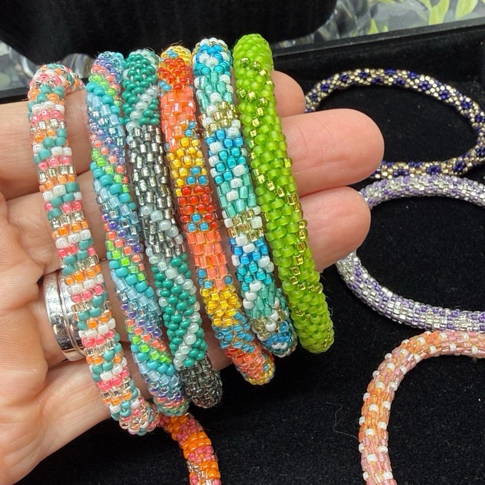 14 Nepal beaded roll on bracelets all colors rainbow artisan