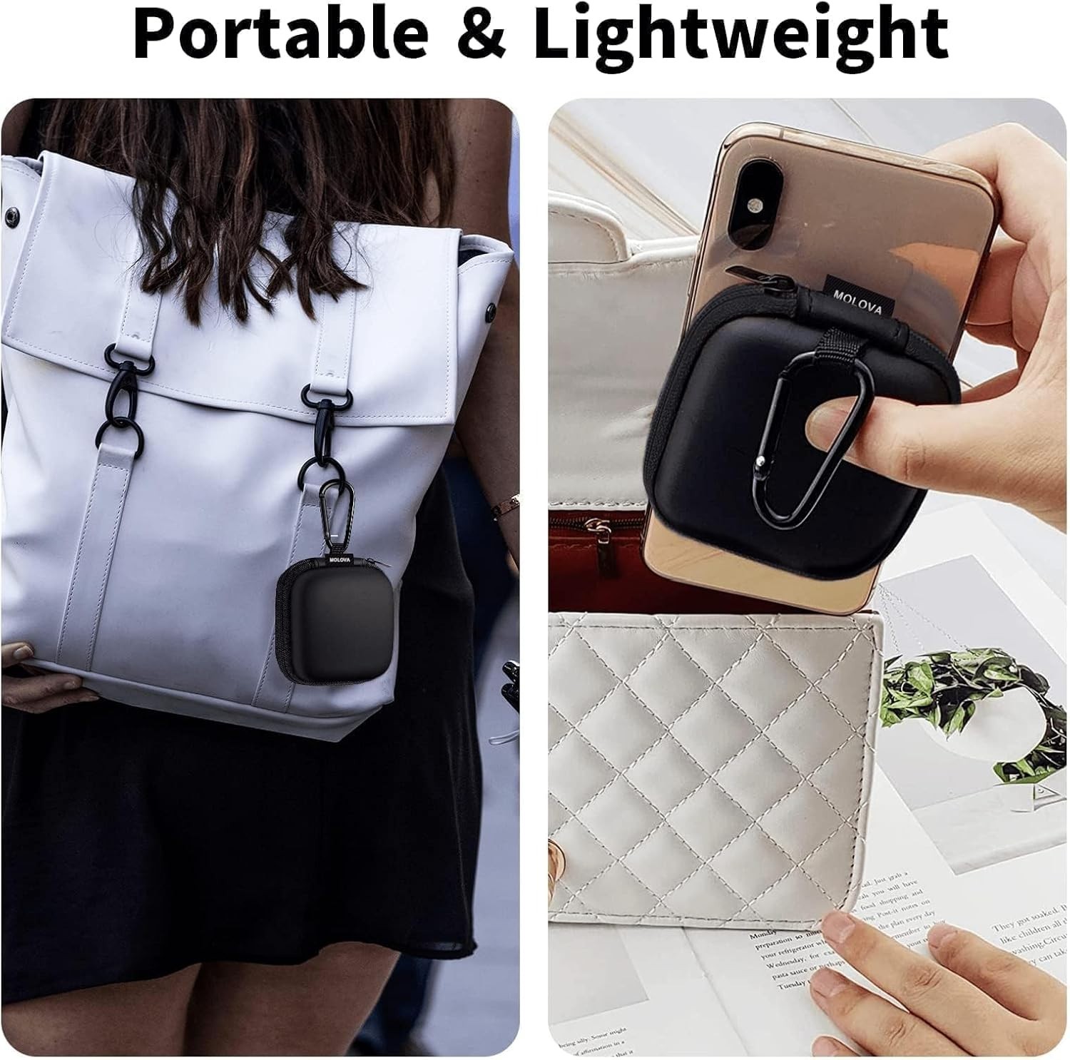 Stylish Black Earbud Storage Bag - Heavy-Duty Case with Mesh Pocket Carabiner