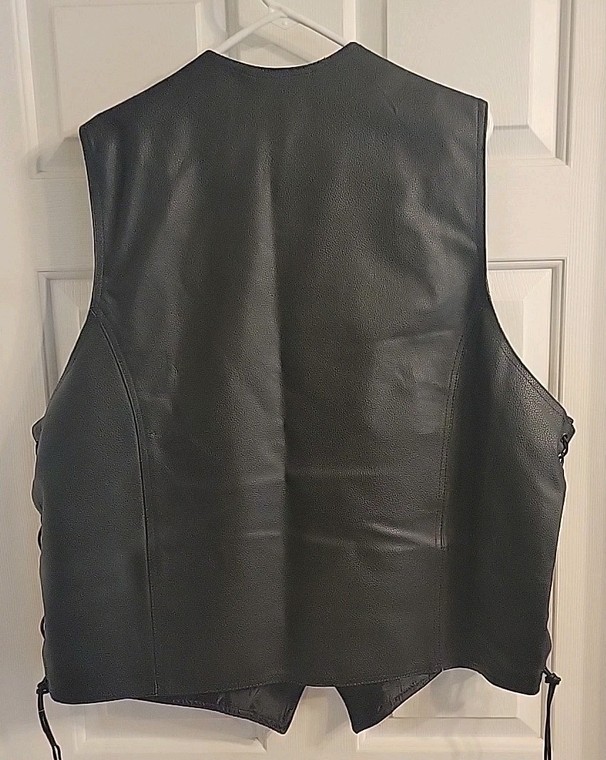 как выглядит Mens Black Genuine Leather Biker Motorcycle Vest with Side Laces Snap bottons фото