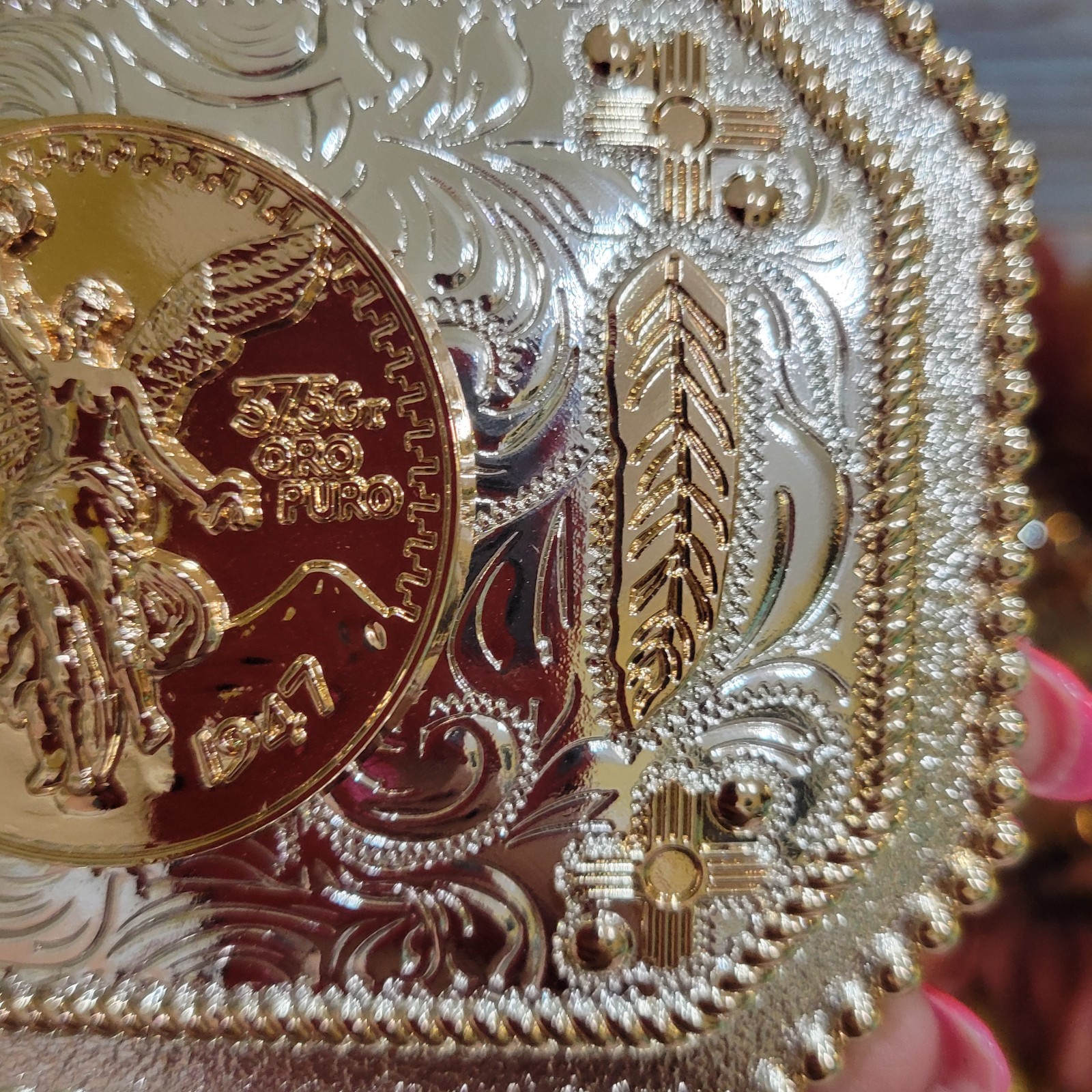 как выглядит Centenario Cowboy Belt Buckle Western Hebilla Rodeo Silver Rosetone Coin фото