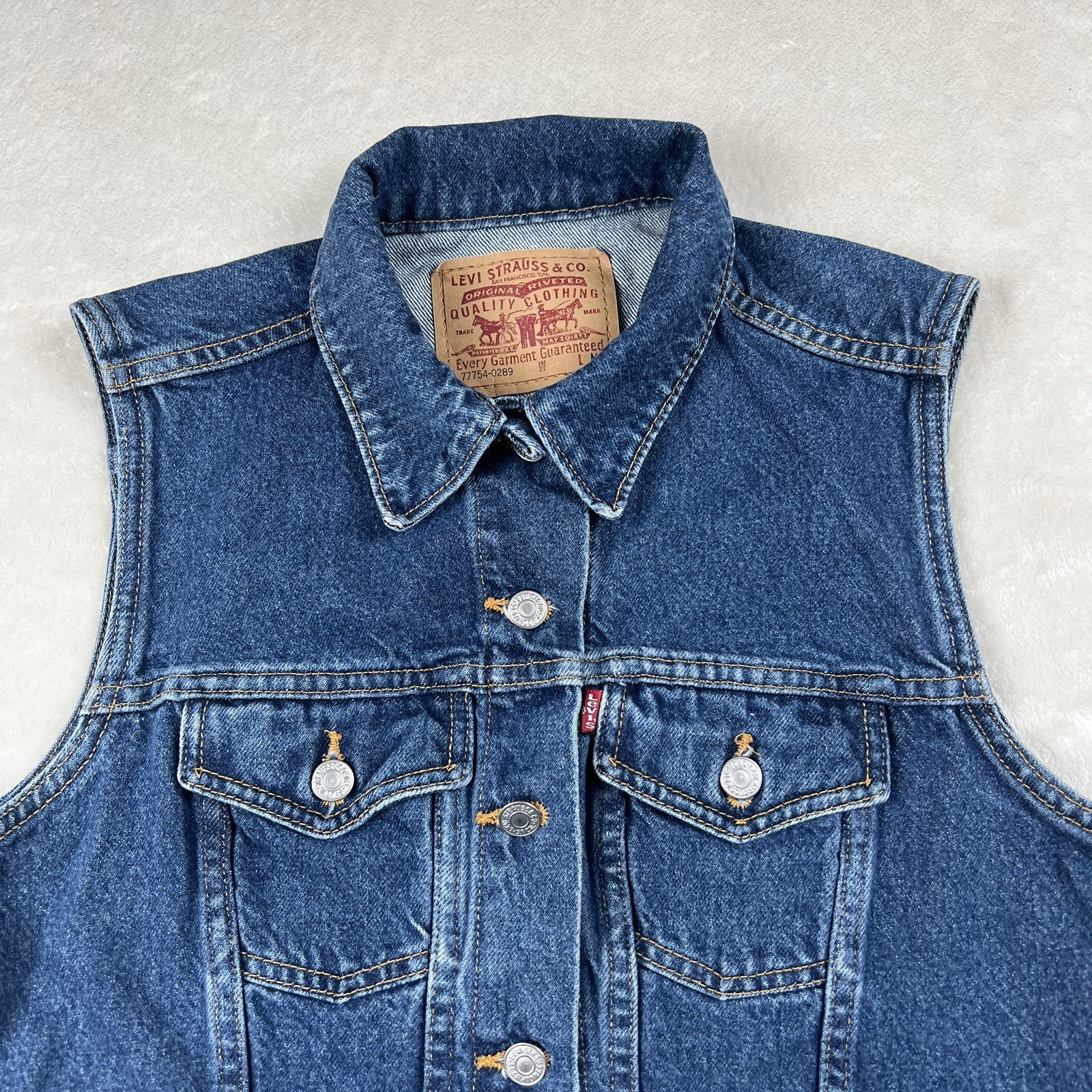 как выглядит Vintage Levis Trucker Vest Womens Medium Blue 77754 Denim Biker Y2K Outdoors фото