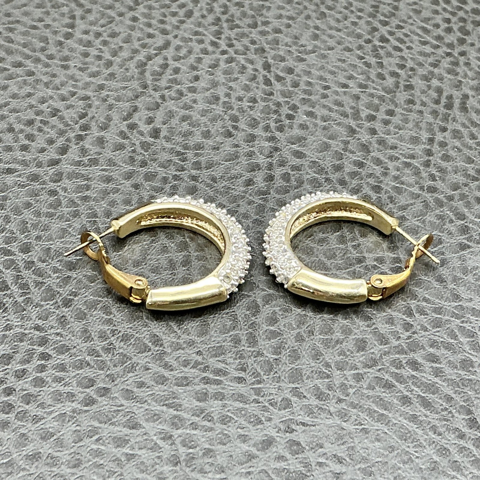 как выглядит Gold Tone Rhinestone Hoop Earrings Womens Hinged Sparkle Round Fashion Jewelry фото