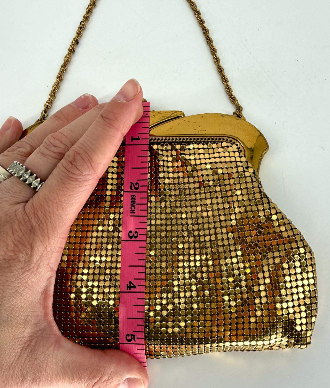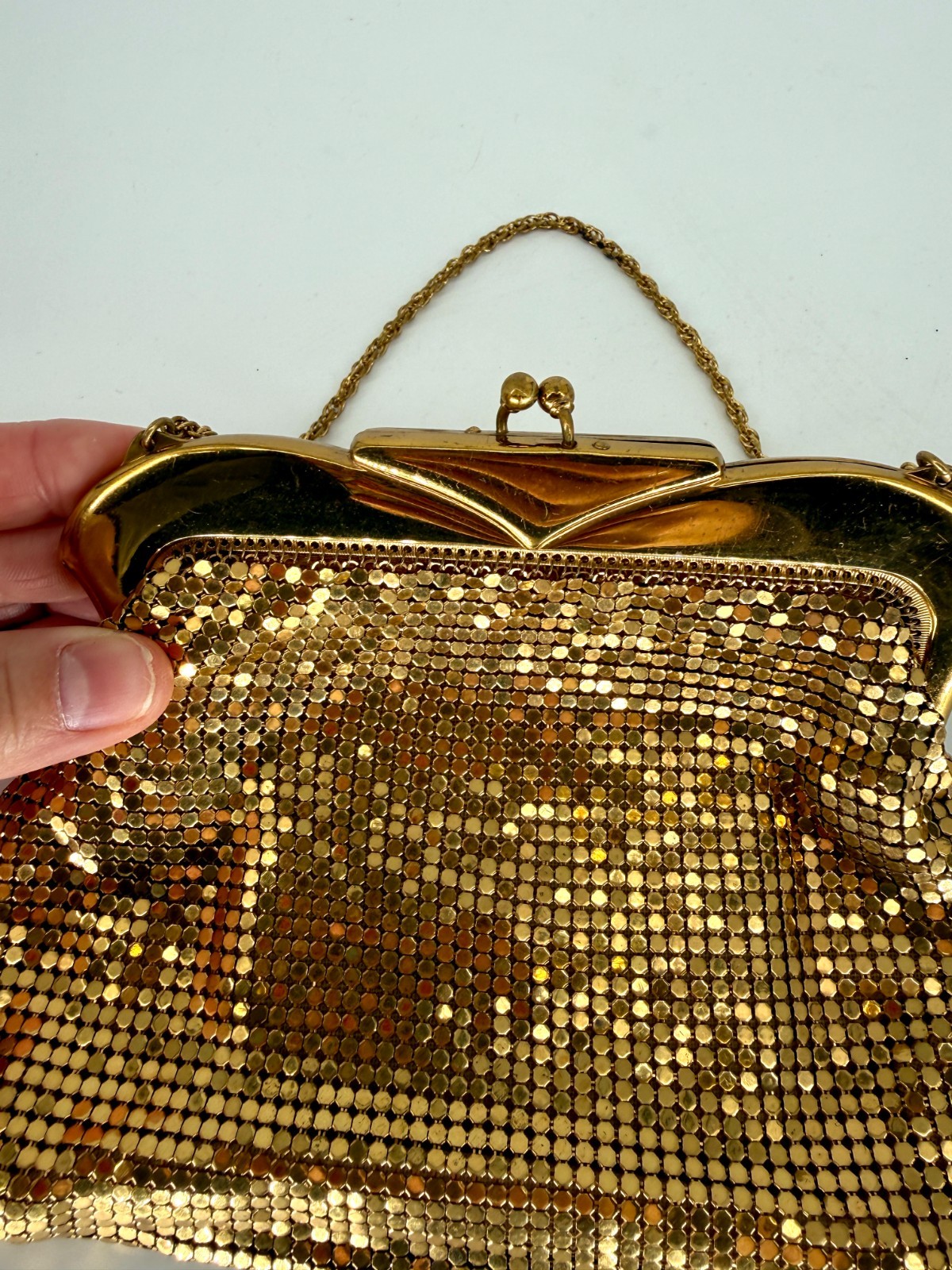 Vintage Whiting Davis Gold Mesh Evening Bag Art Deco Flapper Chain Handle