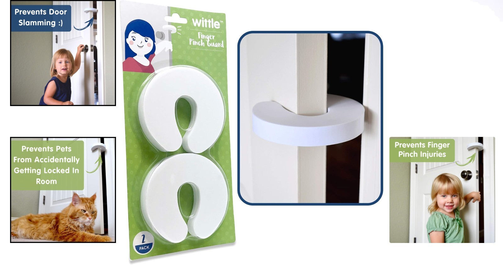 Child Safety Door Stopper - 2-Pack Finger Pinch Guard Door Injury Preventer