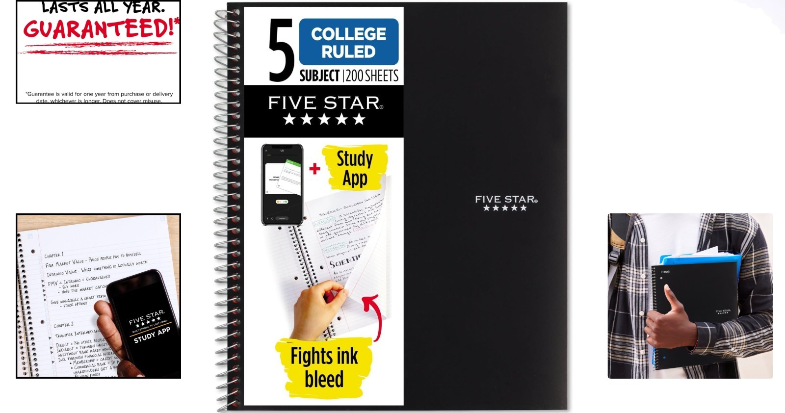College Ruled Spiral Notebook - 5 Subjects, 200 Pages, Guaranteed for All