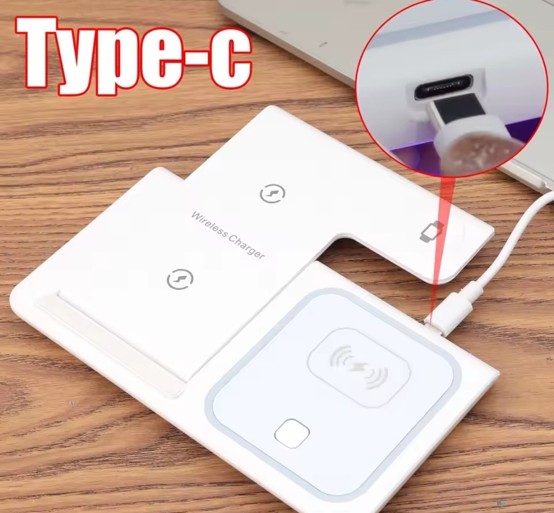 3 In 1 Wireless Charger Stand Pad Foldable Fast Charging Station Dock for Apple