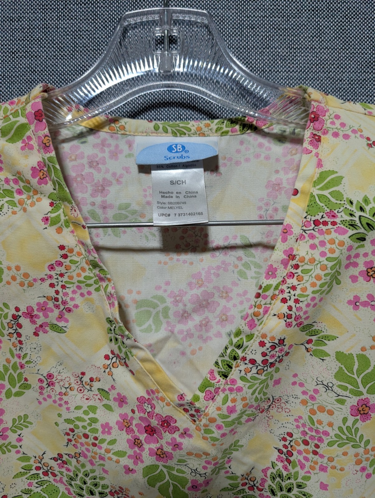 SB scrubs medical small yellow with pink floral