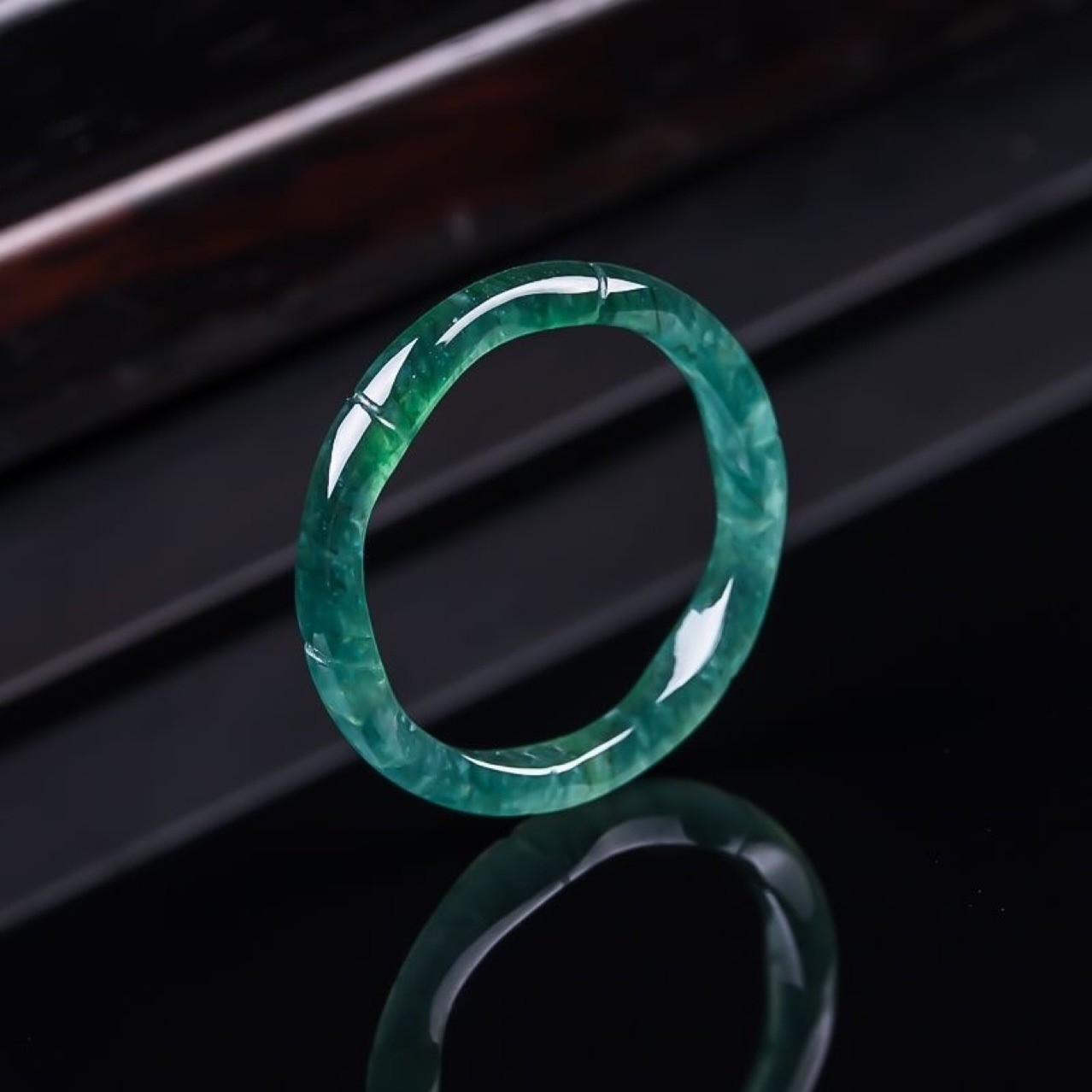как выглядит Certified natural A-grade jadeite Blue Water Ice bamboo joint Simple ring фото