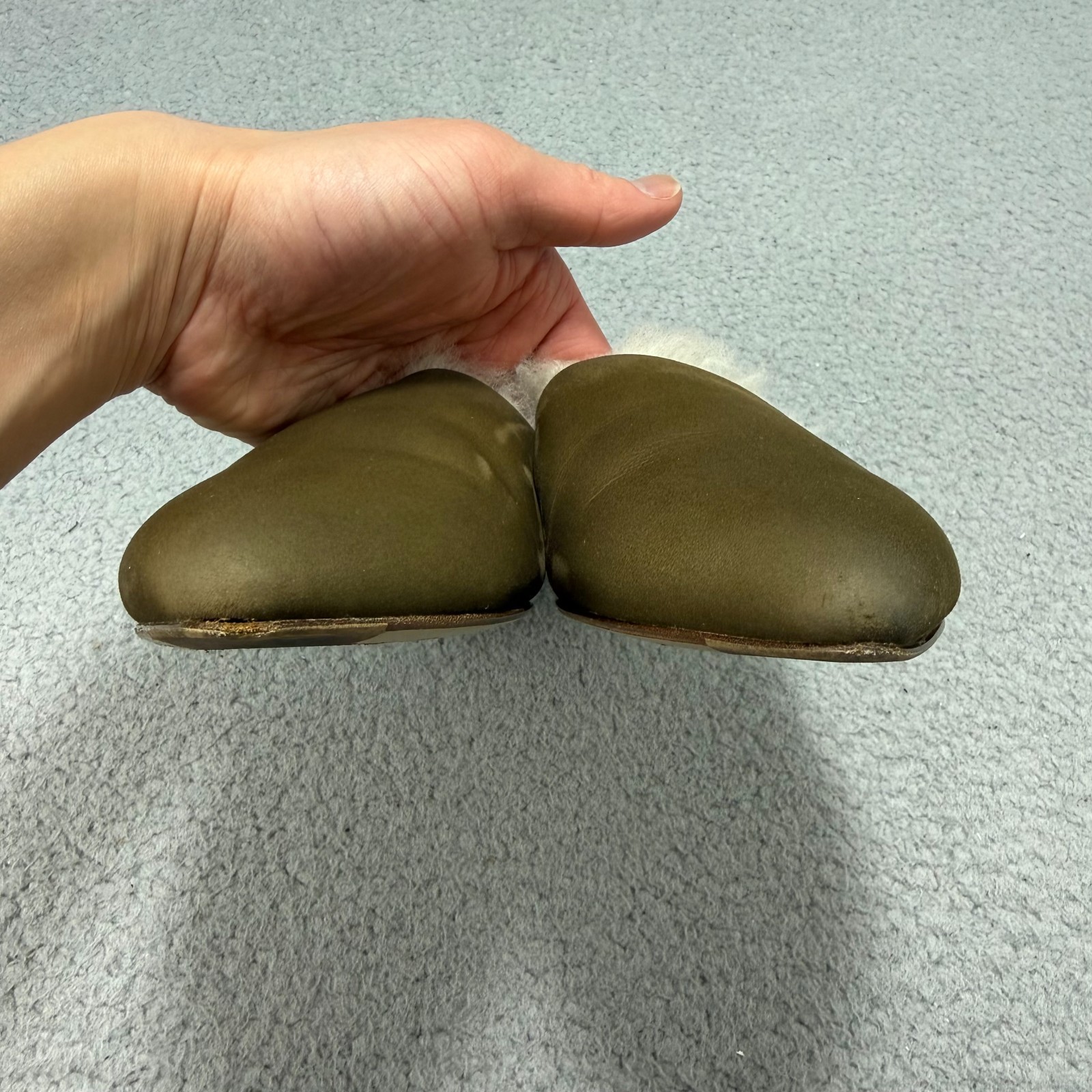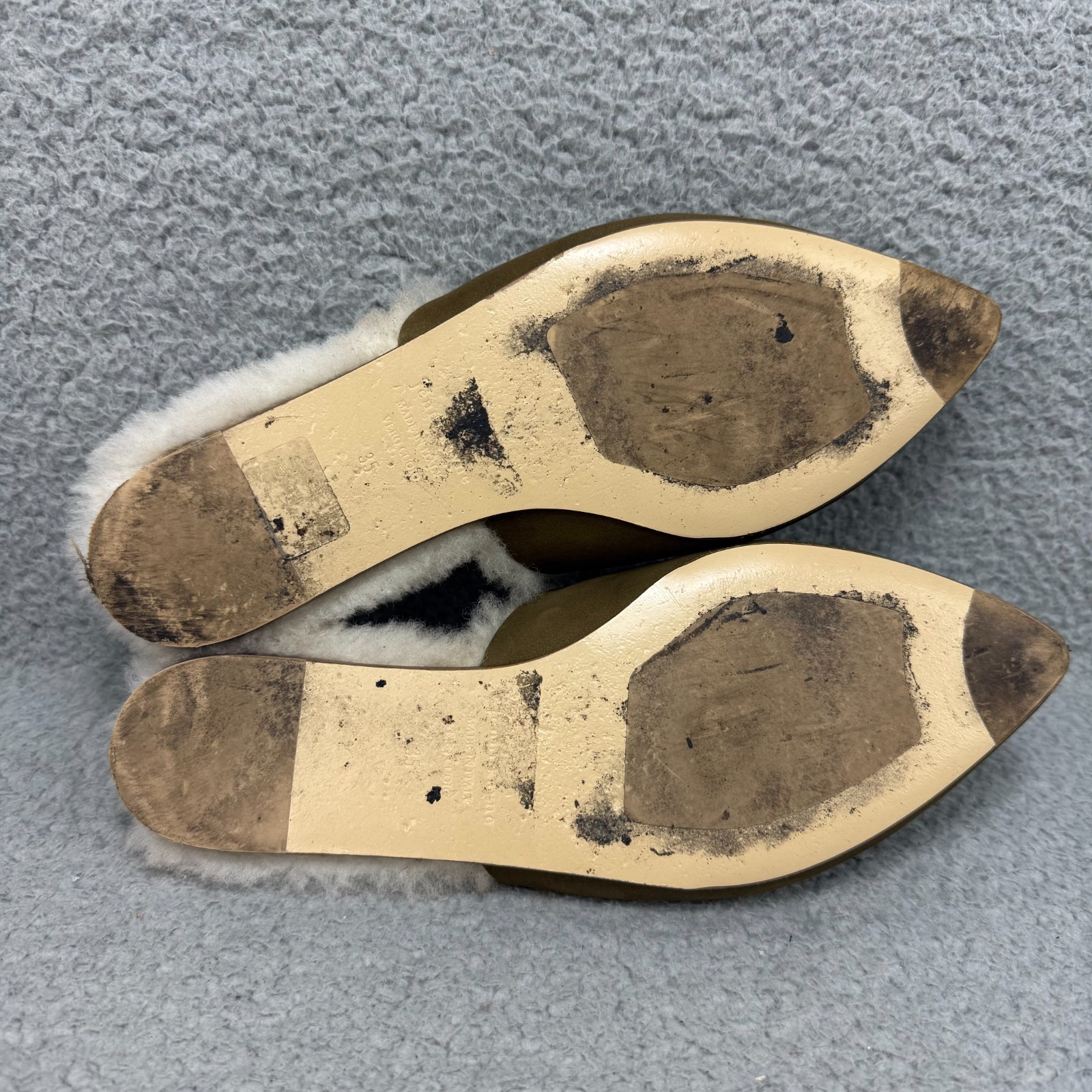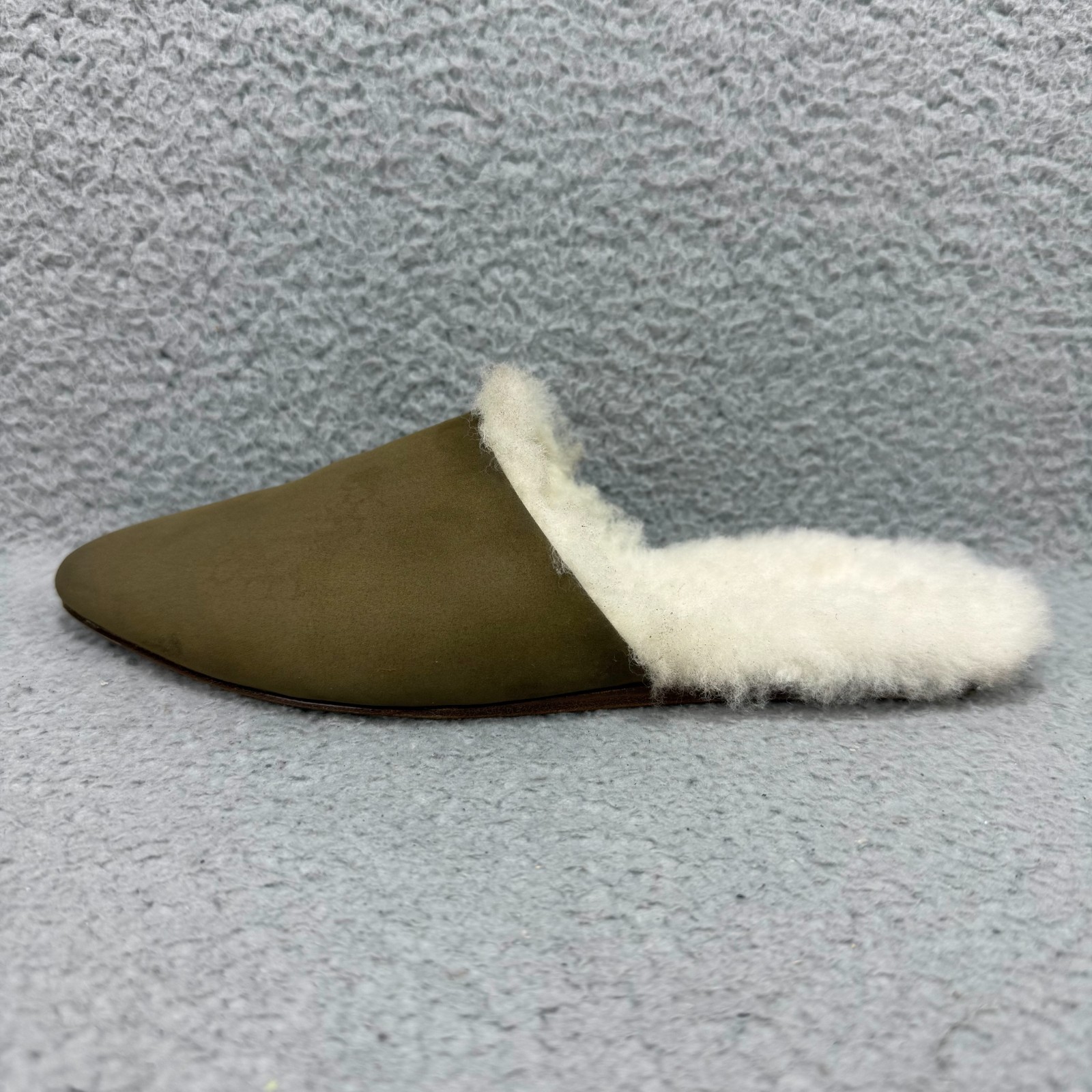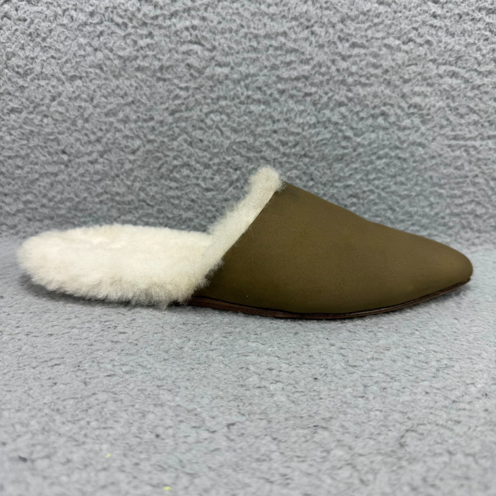 как выглядит Jenni Kayne Mules Women 5 / EU 35 Shoe Olive Green Suede Shearling Slip On Flats фото