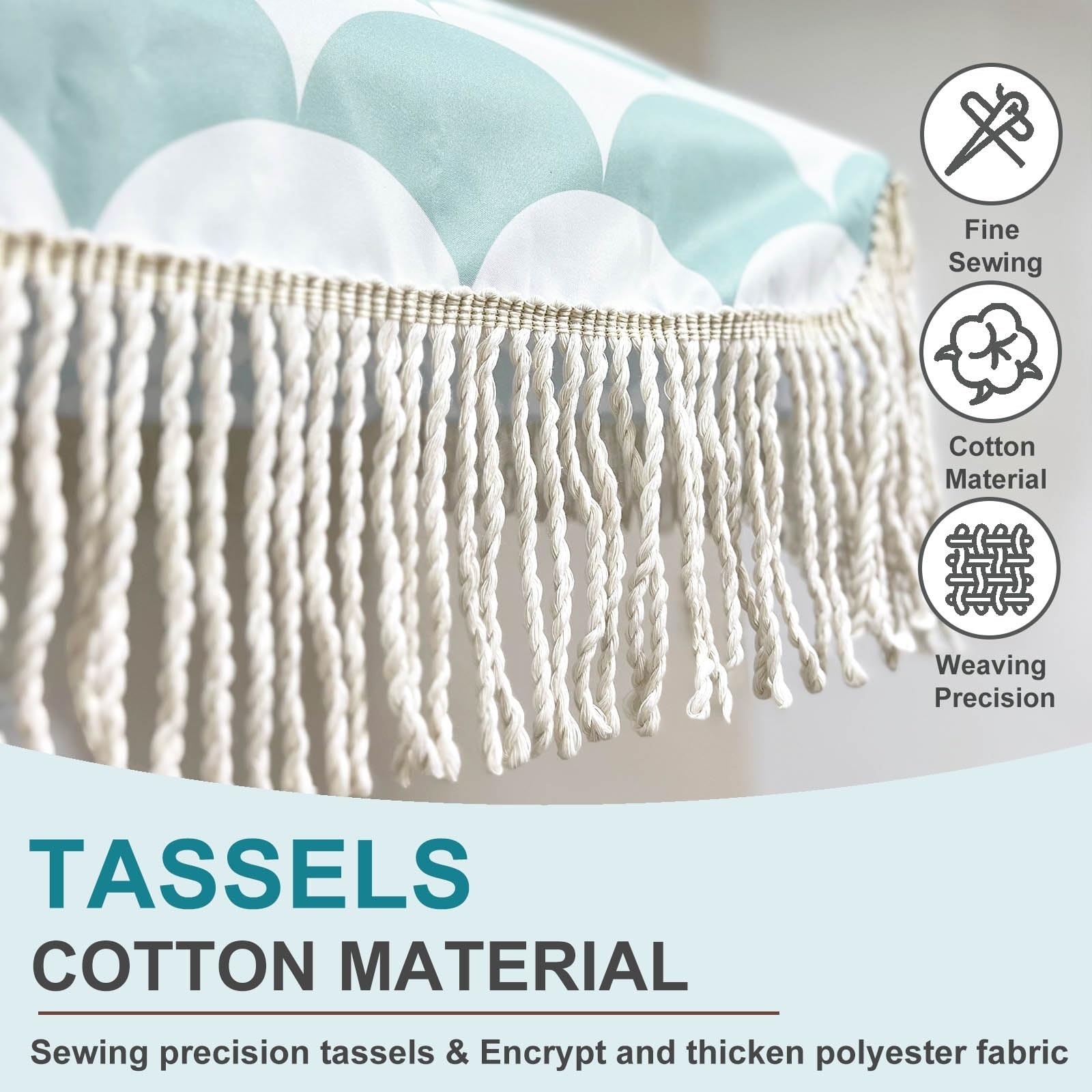 UPF 50 Boho Patio Table Umbrella Waterproof Outdoor Tassel Adjustable Portable