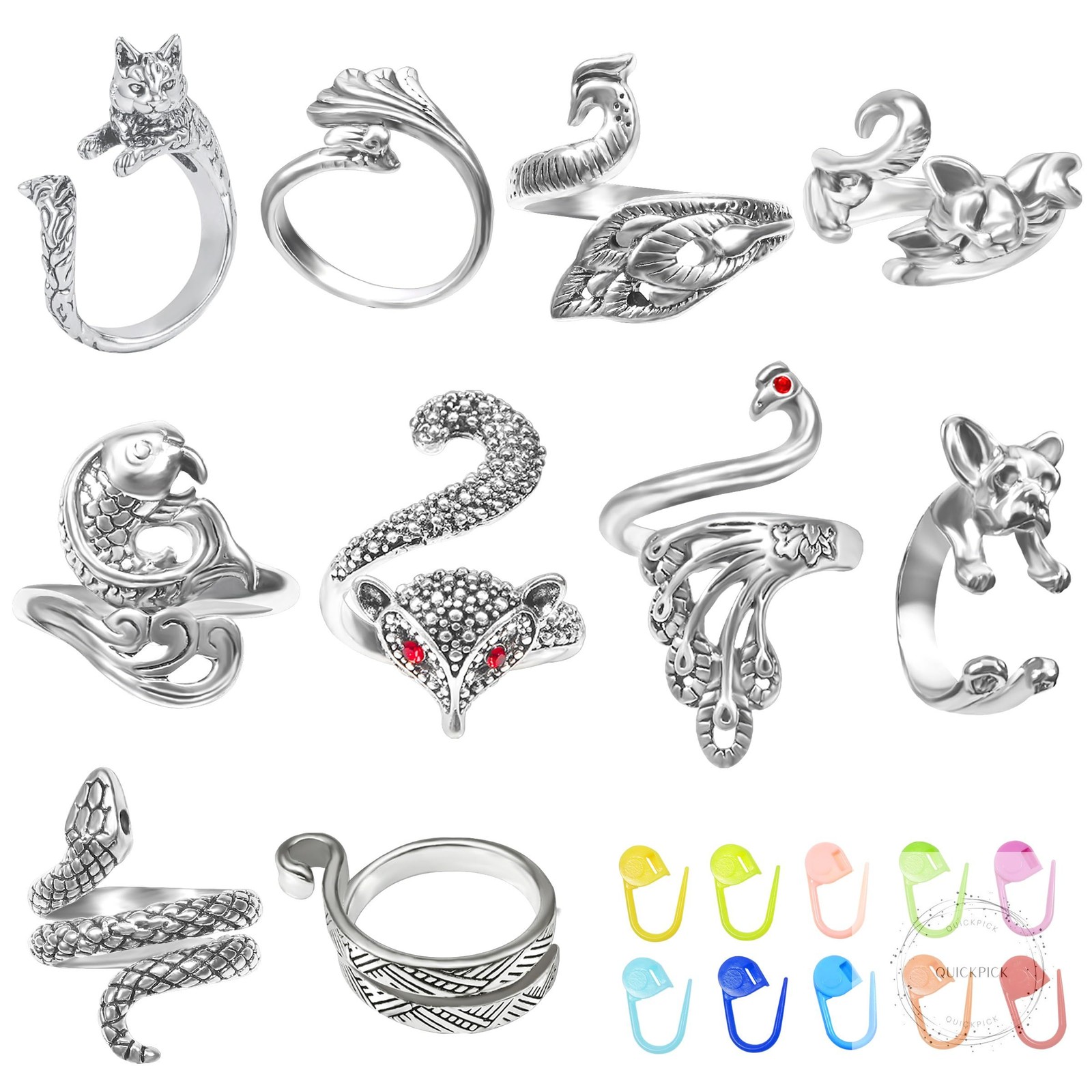 10pcs Crochet Rings Crochet Tension Rings for Finger Crocheting Knitting Adjusta
