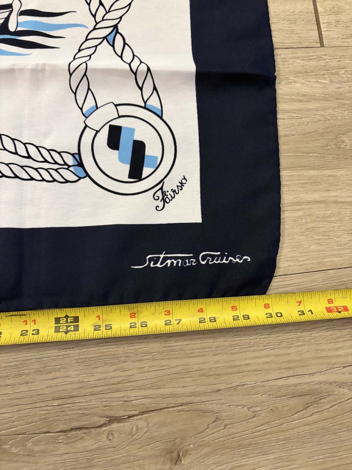 Vintage Sitmar Cruises FairSky Souvenir Scarf Ship Nautical 30 x 30 Blue White