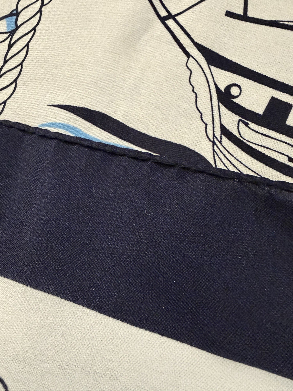 как выглядит Vintage Sitmar Cruises FairSky Souvenir Scarf Ship Nautical 30" x 30" Blue White фото