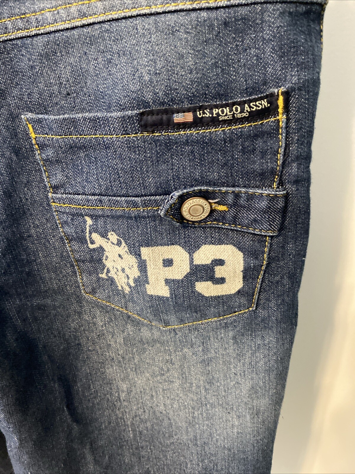 U.S. Polo Assn. Boys 14 Straight Blue Jean Shorts Embroidered USA Flag Logo EUC