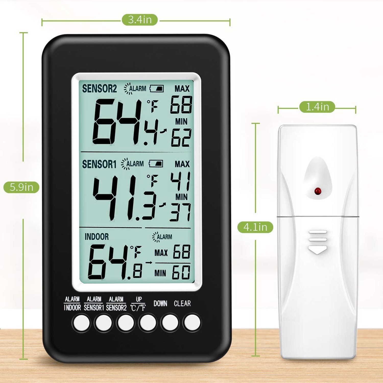 как выглядит KeeKit Refrigerator Thermometer, Wireless Indoor Outdoor Thermometer with 2 S... фото