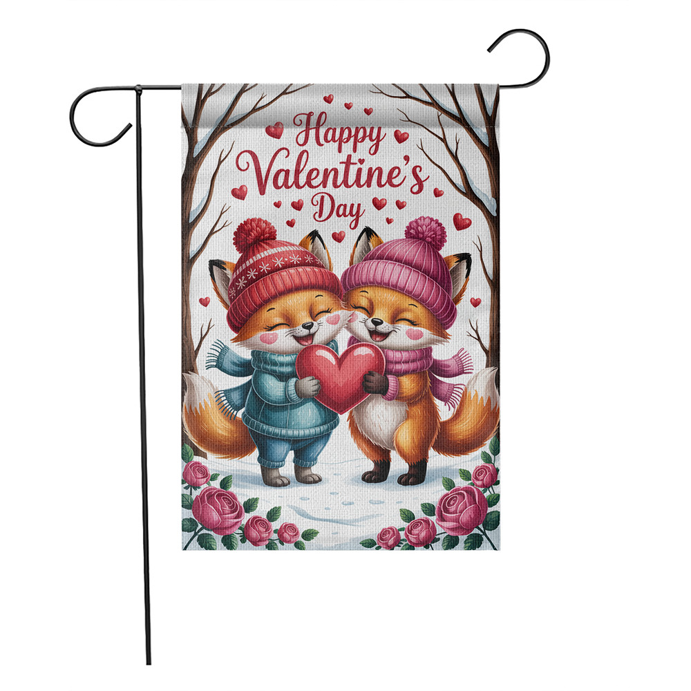 как выглядит Happy Valentines Day Garden Flag Floral Heart Wildflower Meadow Yard Decor фото