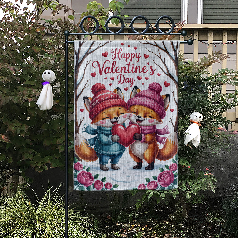Happy Valentine's Day Garden Flag Floral Heart Wildflower Meadow Yard Decor