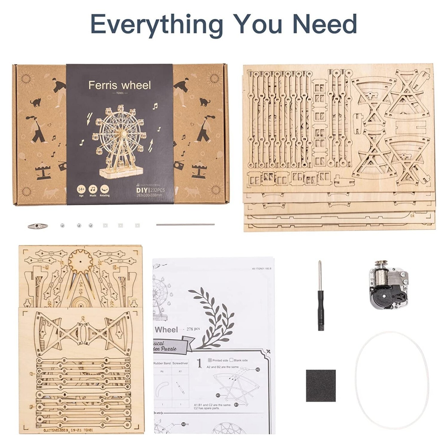 Rolife 3D Wooden Puzzle Model Kits Rotating Ferris Wheel with Music Xmas Gifts