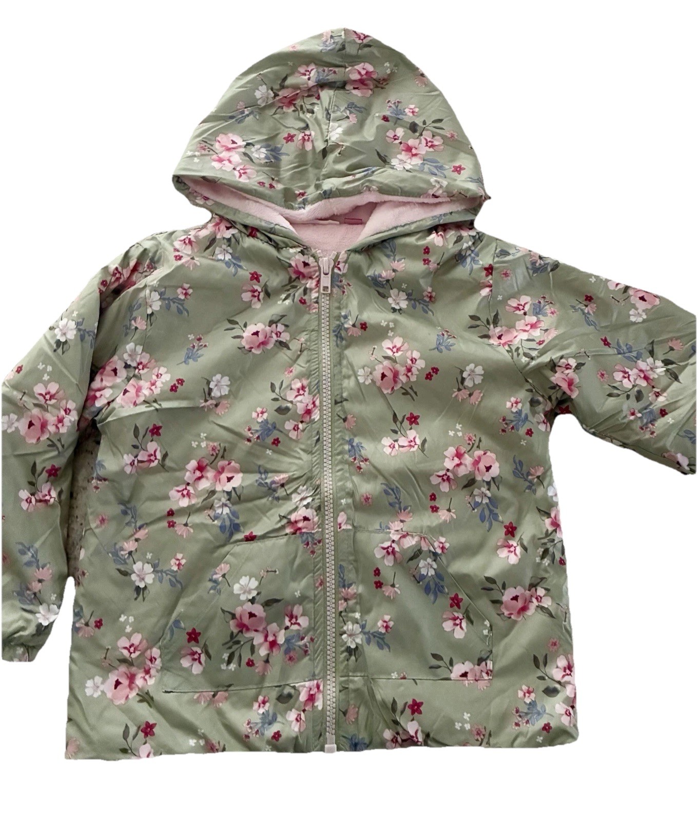 Penelope Mack Girl Jacket Green With Pink Flowers 4 Years
