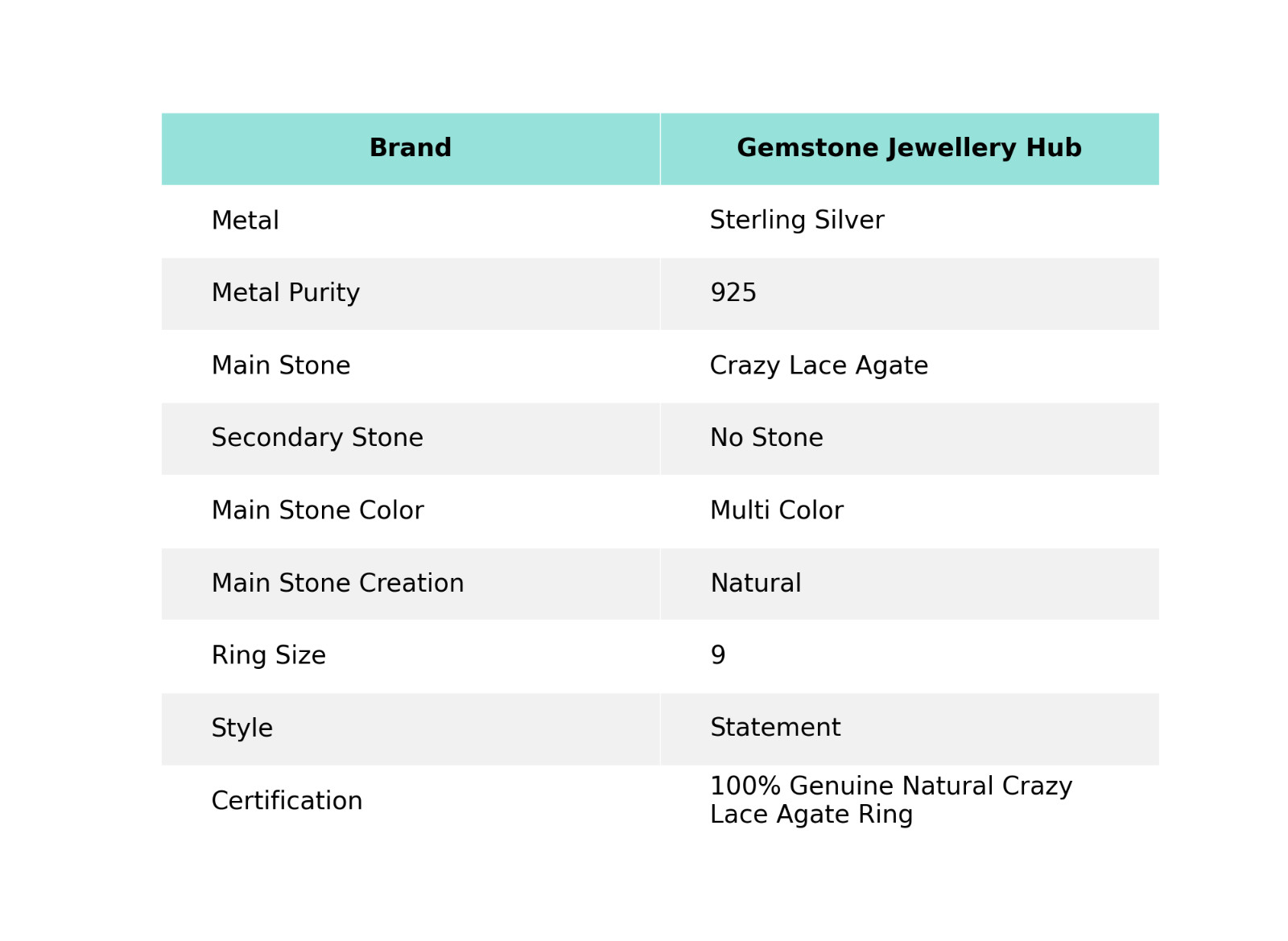 Certification: 100% Genuine Natural Crazy Lace Agate Ring