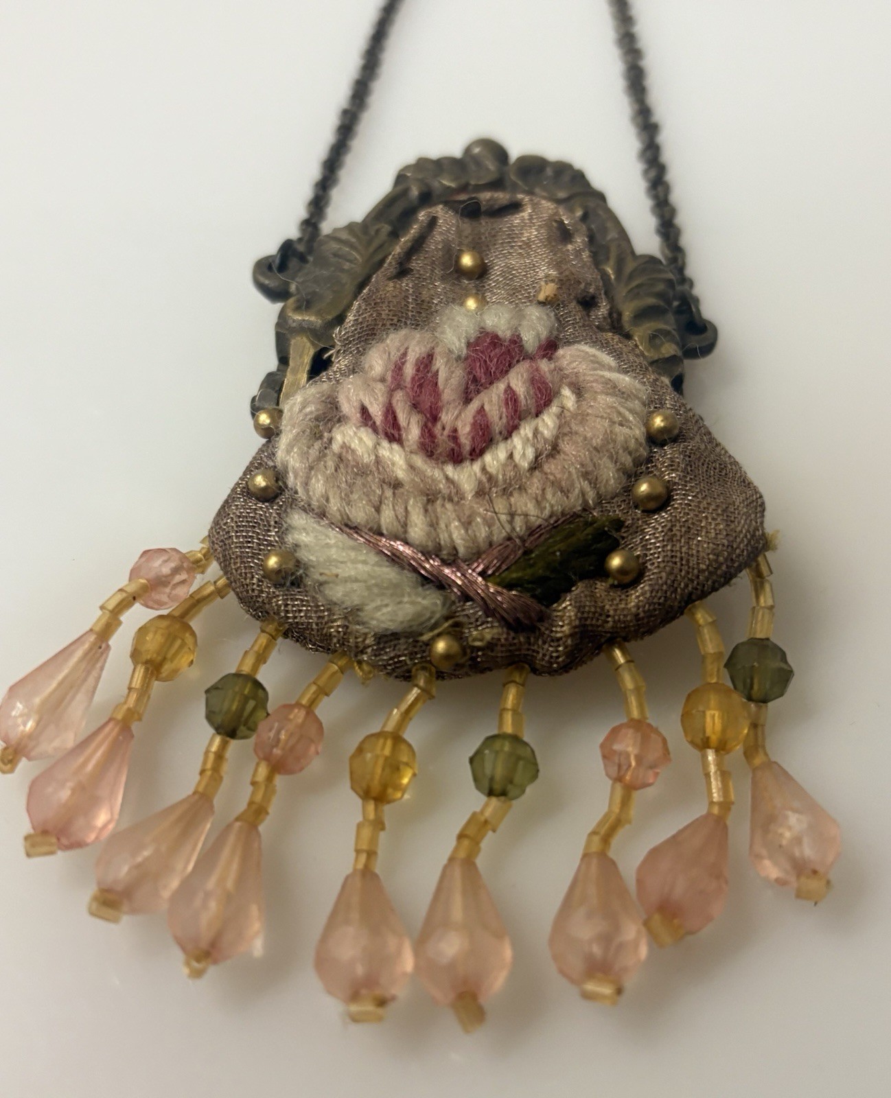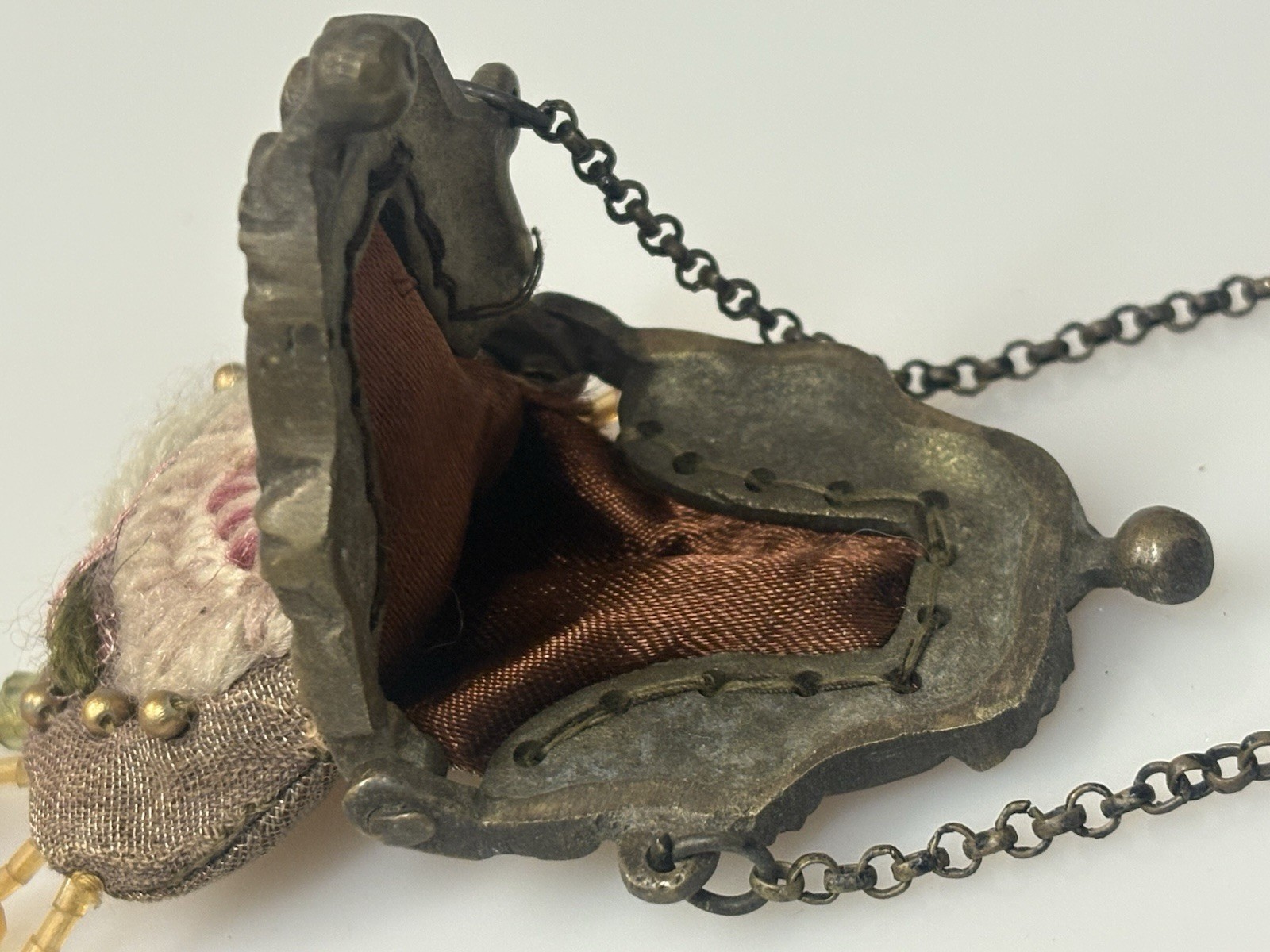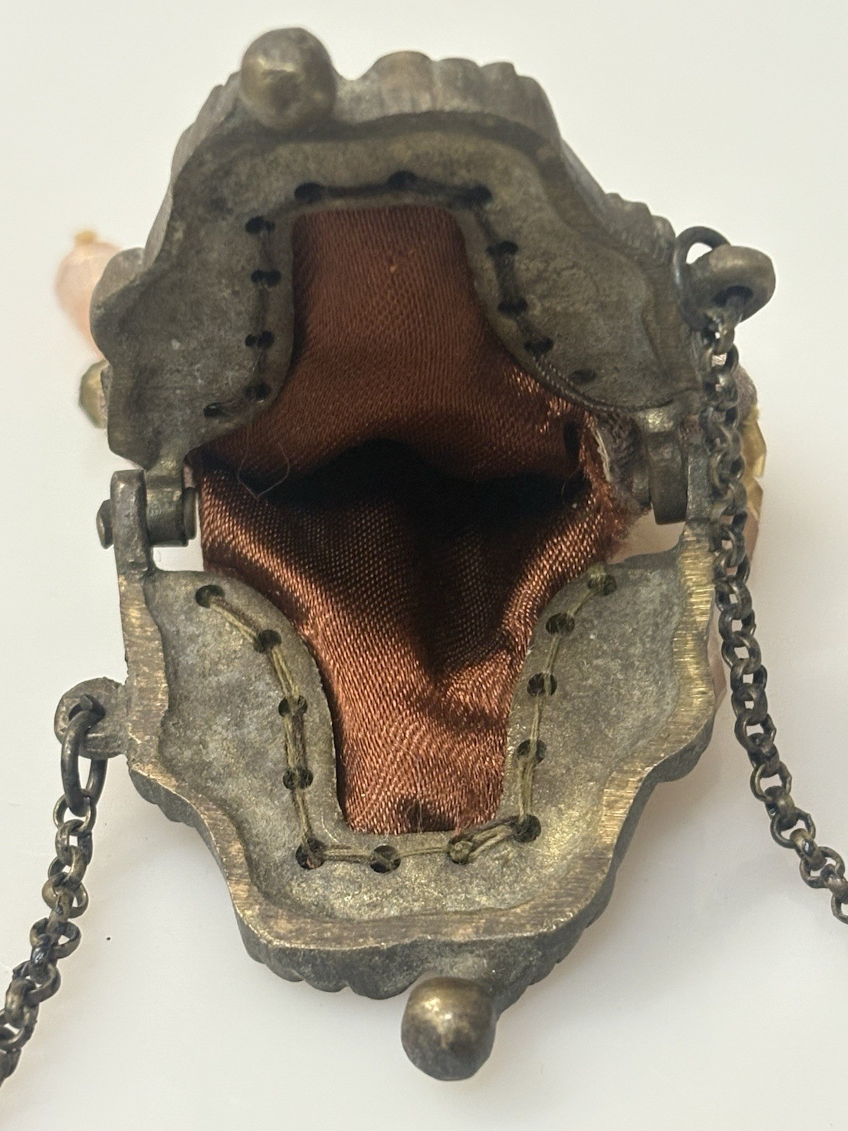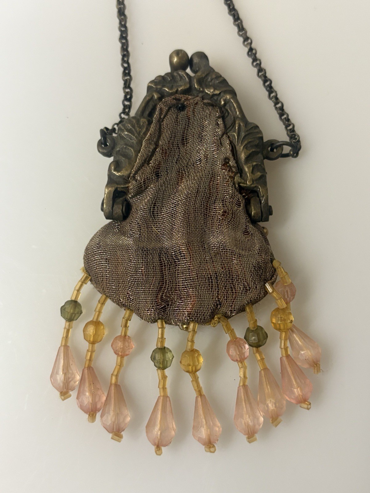 как выглядит VTG MINI COIN PURSE METAL CLOTH LINED W/ BEADED TRIM - VERY RARE FIND фото