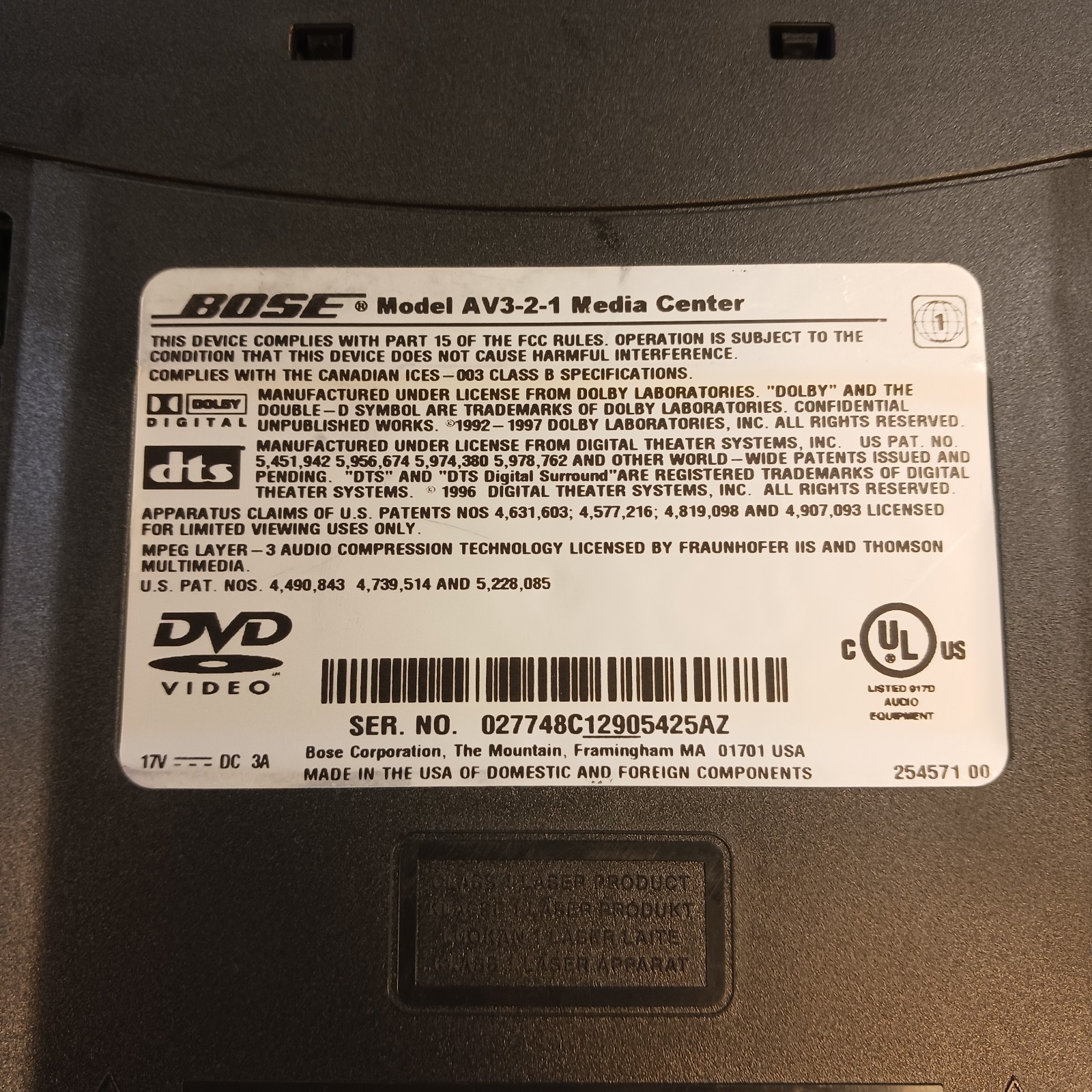 Bose AV 3-2-1 Media Center Receiver 321 Series I - UNTESTED AS-IS FOR PARTS