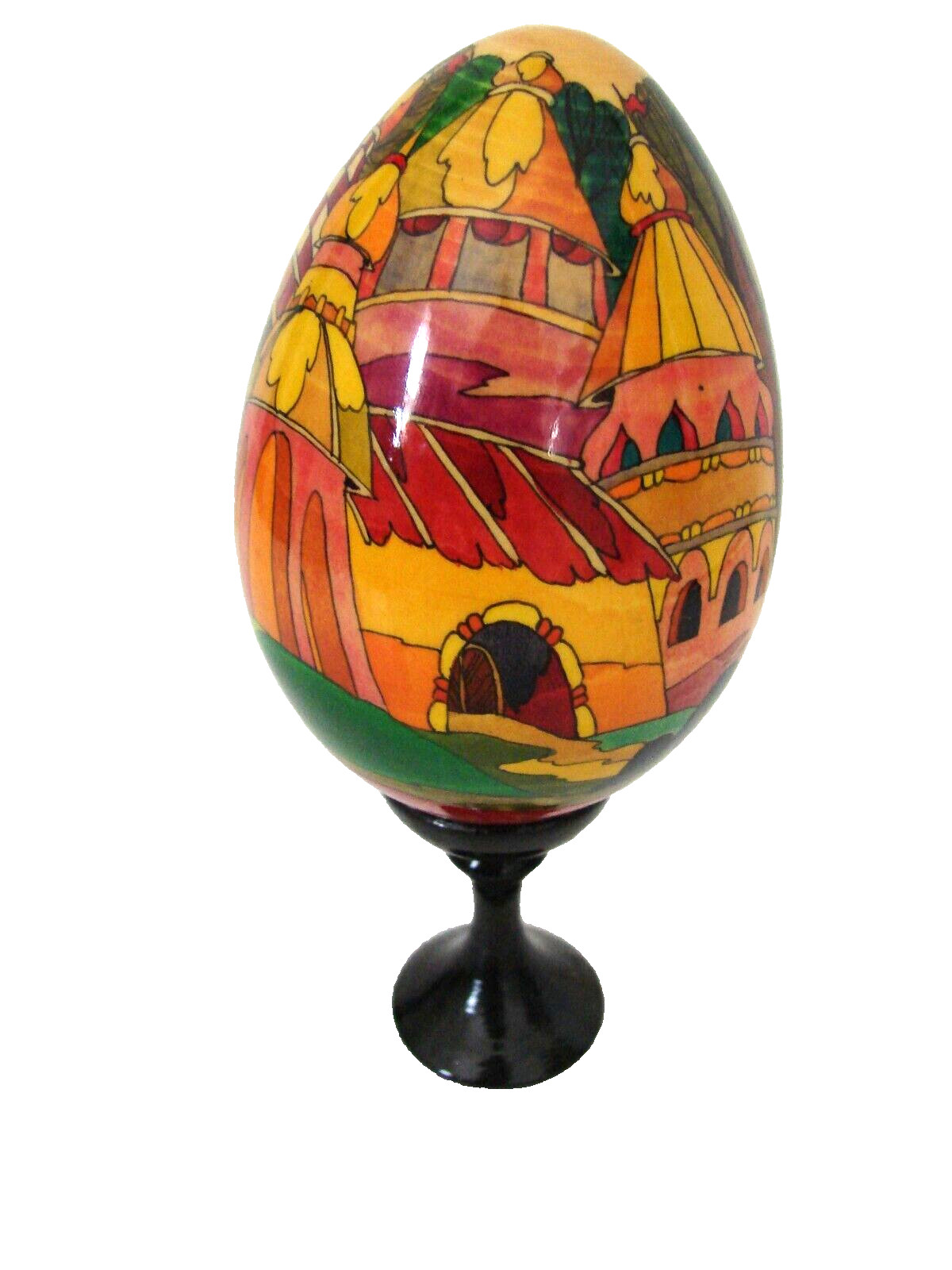 • Vtg Russian Folk Art Hand Painted And Artist Signed Wood Egg