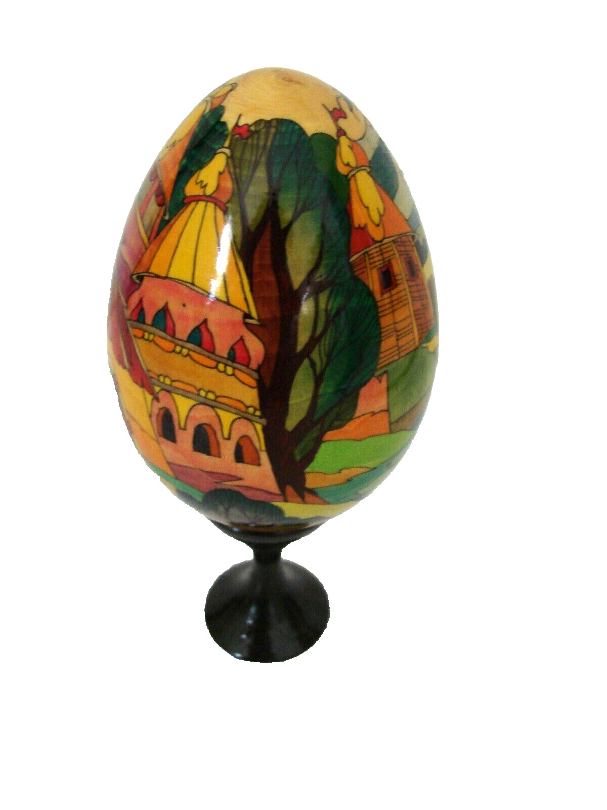 как выглядит Vtg Russian Folk Art Hand Painted And Artist Signed Wood Egg фото