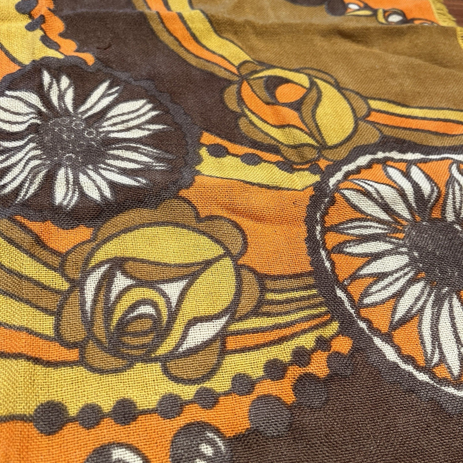 Vintage 1970's Wool Scarf Gold/Orange/Brown 22.5x22.5 Made in Japan