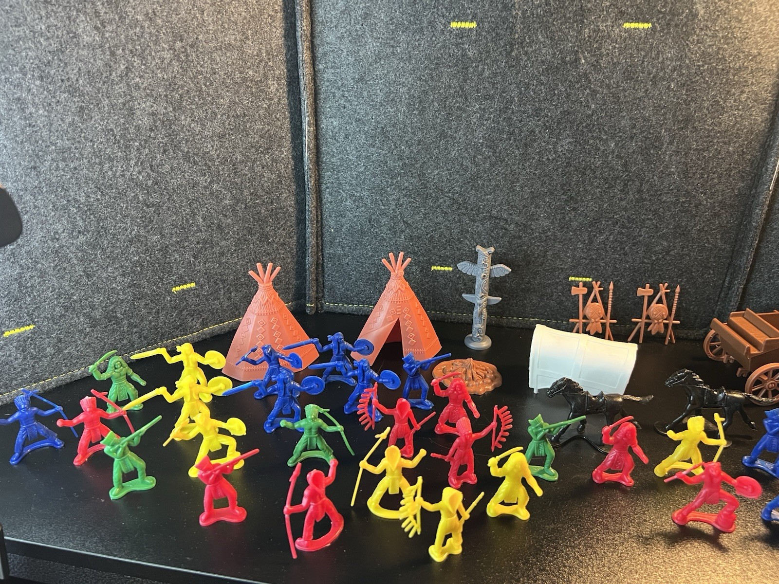 Vintage Cowboys Indians Plastic Play Set With Bag Read Toy Major