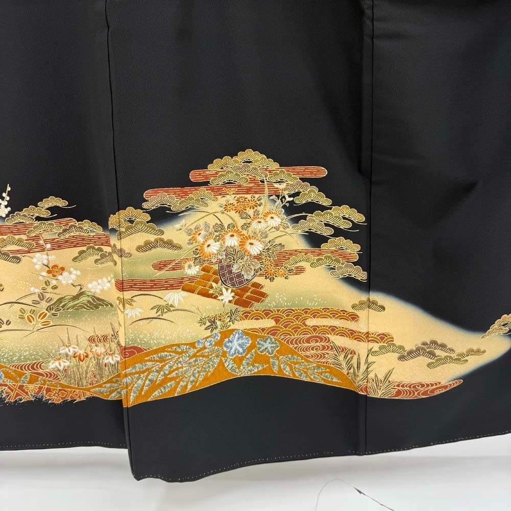 • Japanese Kimono polyester wedding kimono Black tomesode "kurotomesode" 4975