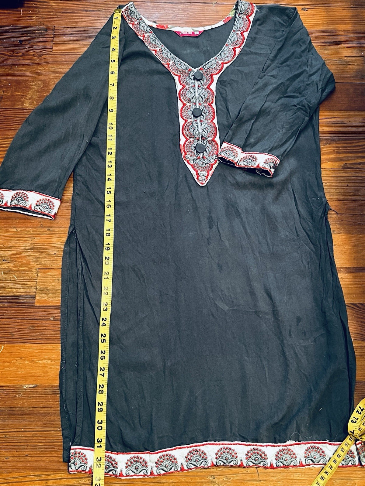 как выглядит Womens Dark Grey W/ Red, White, And Red Embroidered Kurta / Tunic / Kurti фото
