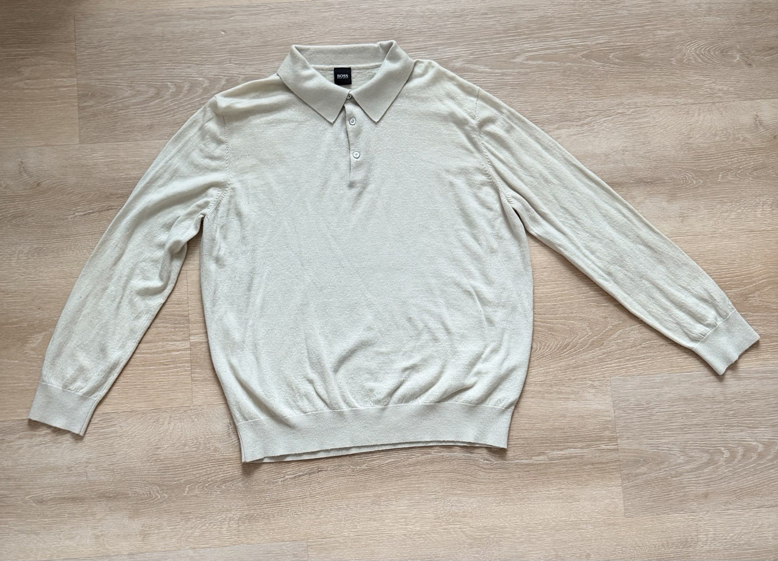 как выглядит Hugo Boss Men s Long-Sleeve Knit Polo Sweater Italian Virgin Wool Blend Size M-S фото
