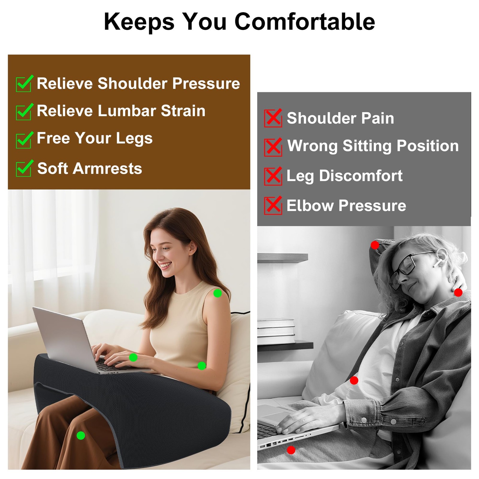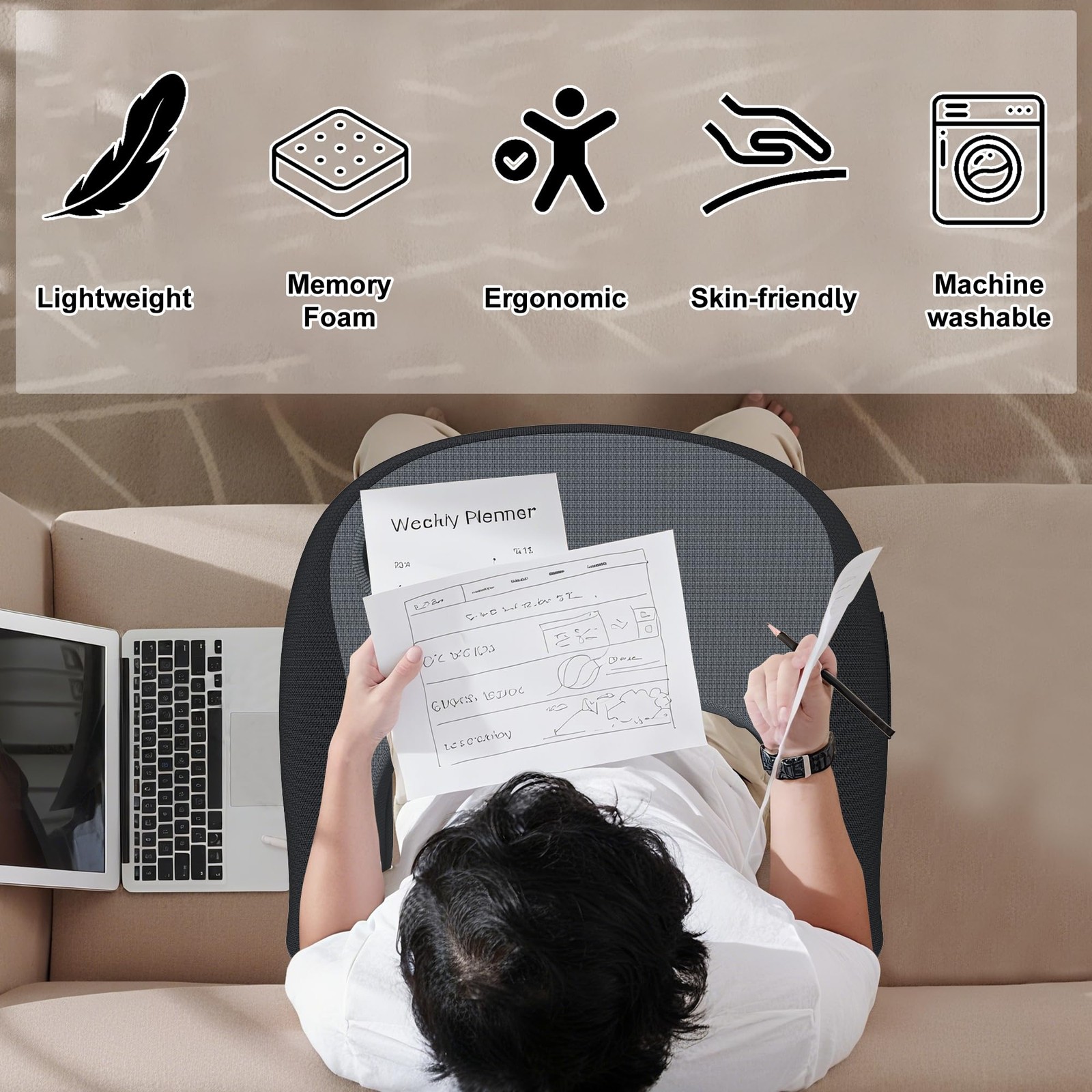 Reading Gaming Pillow, Extra Large Lap Pillow for Adults , Memory Foam Supp...