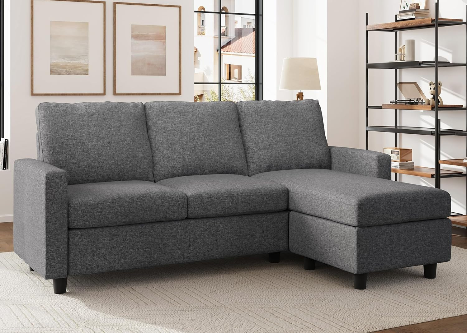 L-Shaped Convertible Sectional Sofa with Reversible Chaise in Mid Grey
