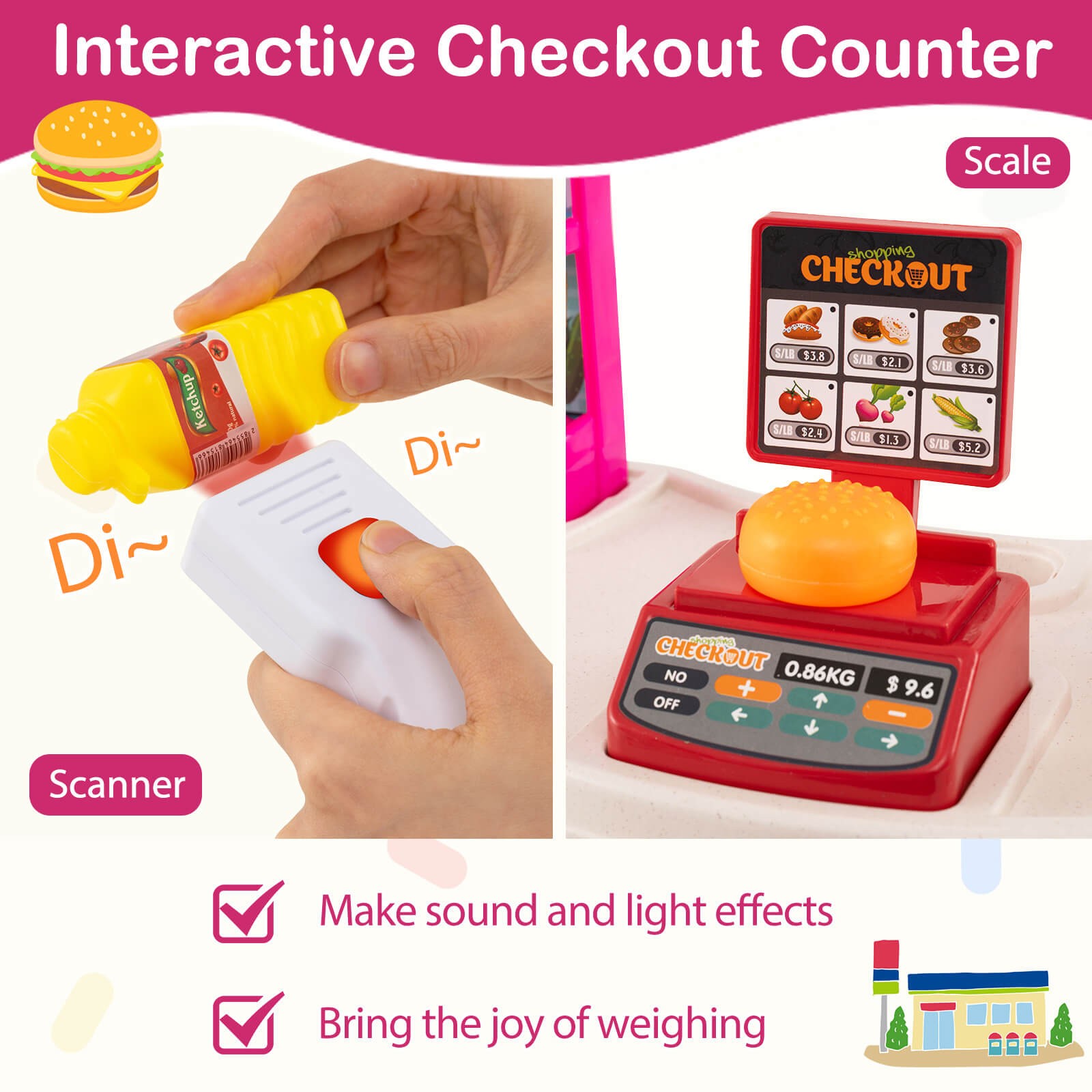 Set Includes: 1 × Pretend Supermarket Toy, 1 × Shopping Cart, 76 × Pieces of Ac