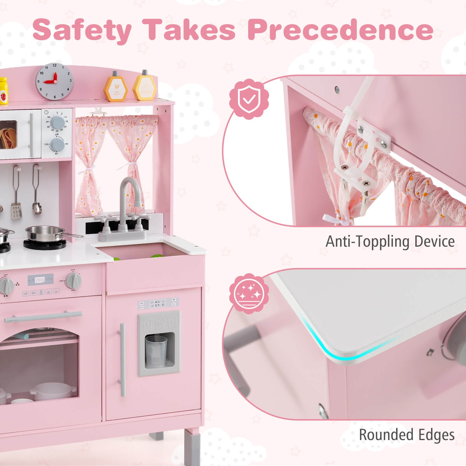 Play Kitchen w/3 Adjustable Heights, Microwave, Stoves, Sink, Oven, Ice Maker