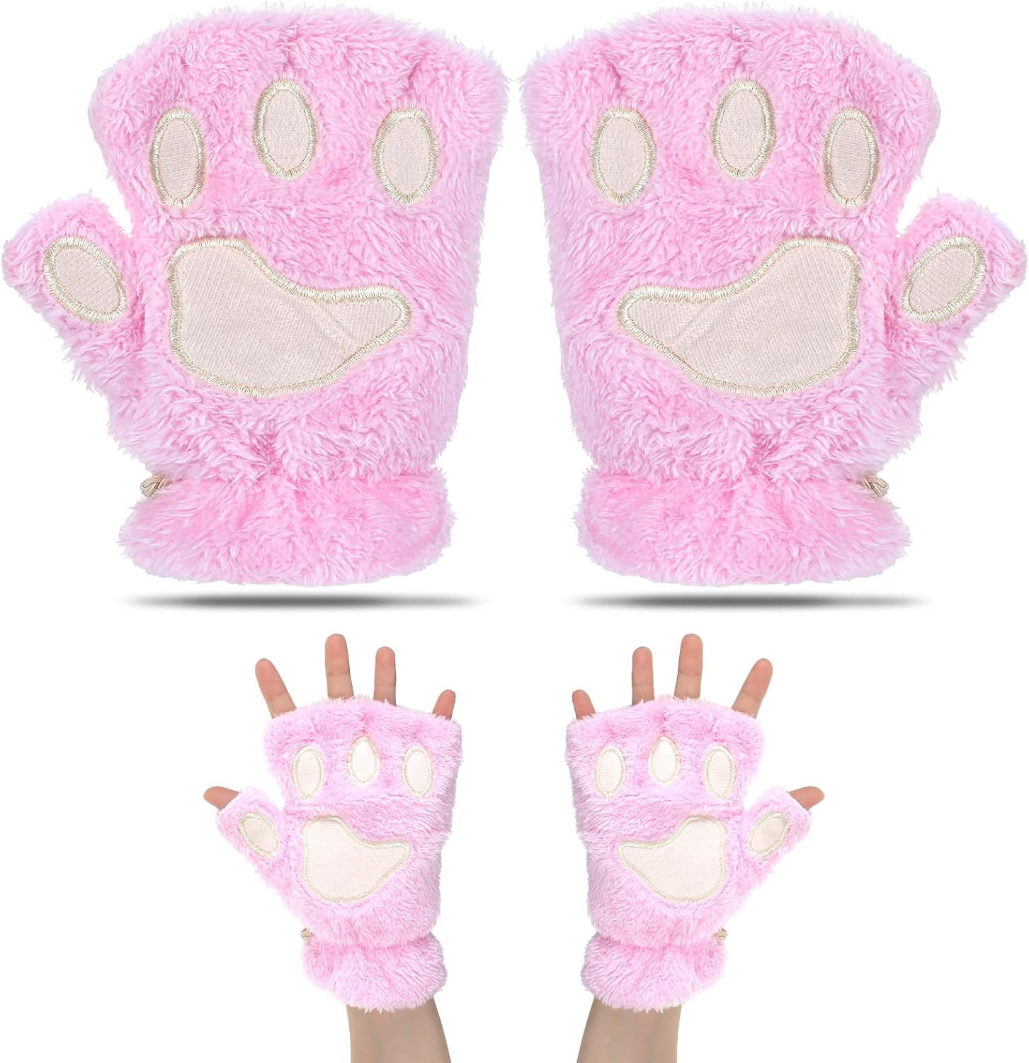 Cat Paw Fingerless Gloves, Furry Paws Gloves Faux Fur Plush Furry Cat Claw Glove