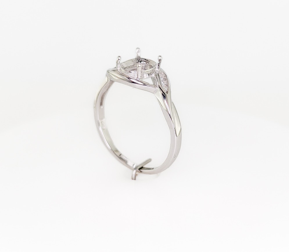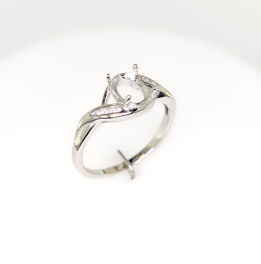 8 x 6 mm Oval CZ Semi Mount Bypass Ring Setting Sterling Silver w/Rhodium Finish