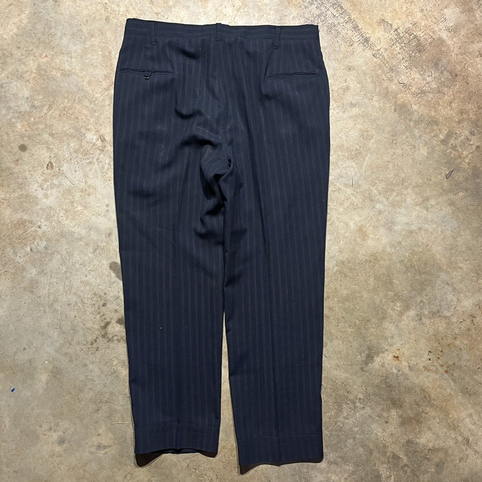 Vintage 70s Unbranded Talon Navy Striped Trouser Pants 36x29 1970s True Vintage