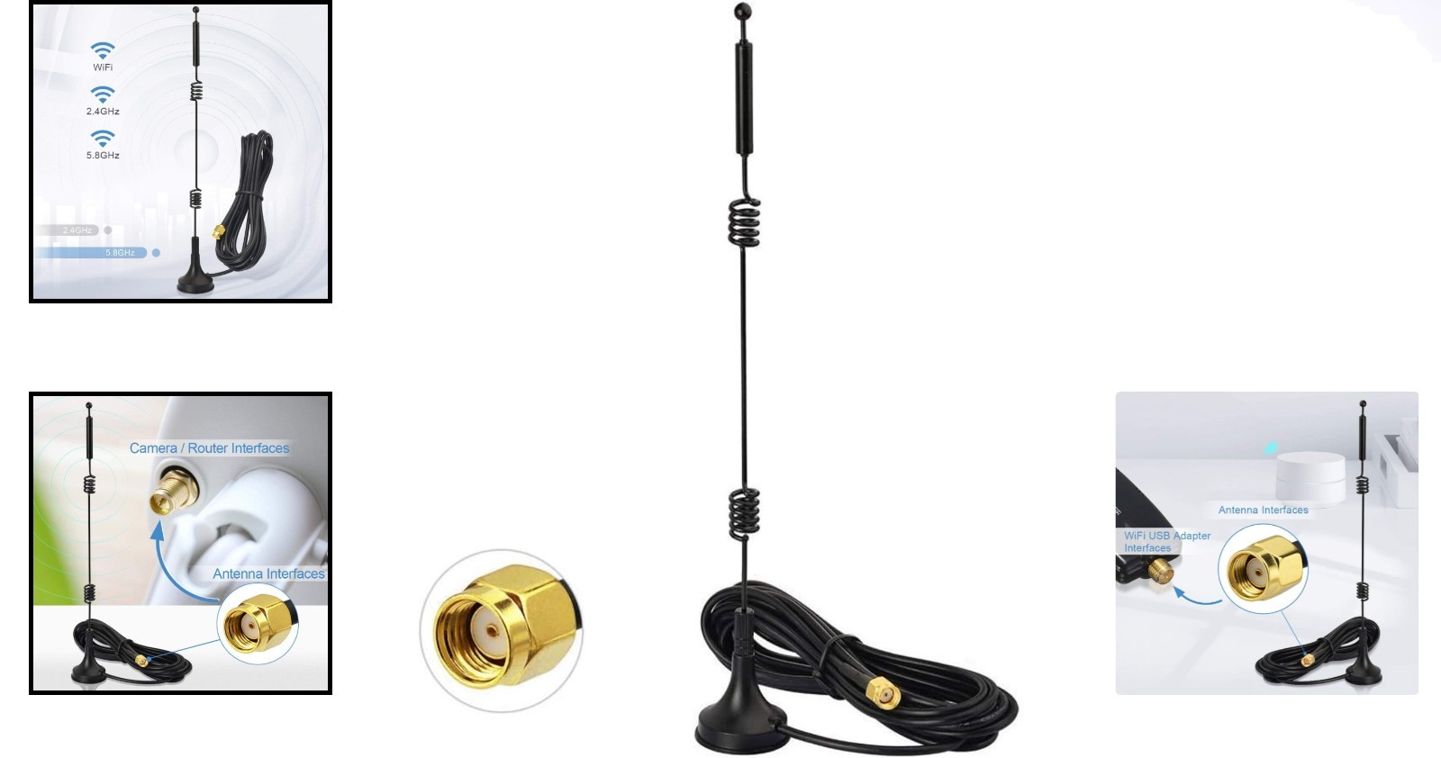 9dBi Magnetic Base RP-SMA Male WiFi Antenna for Enhanced Surveillance Connection