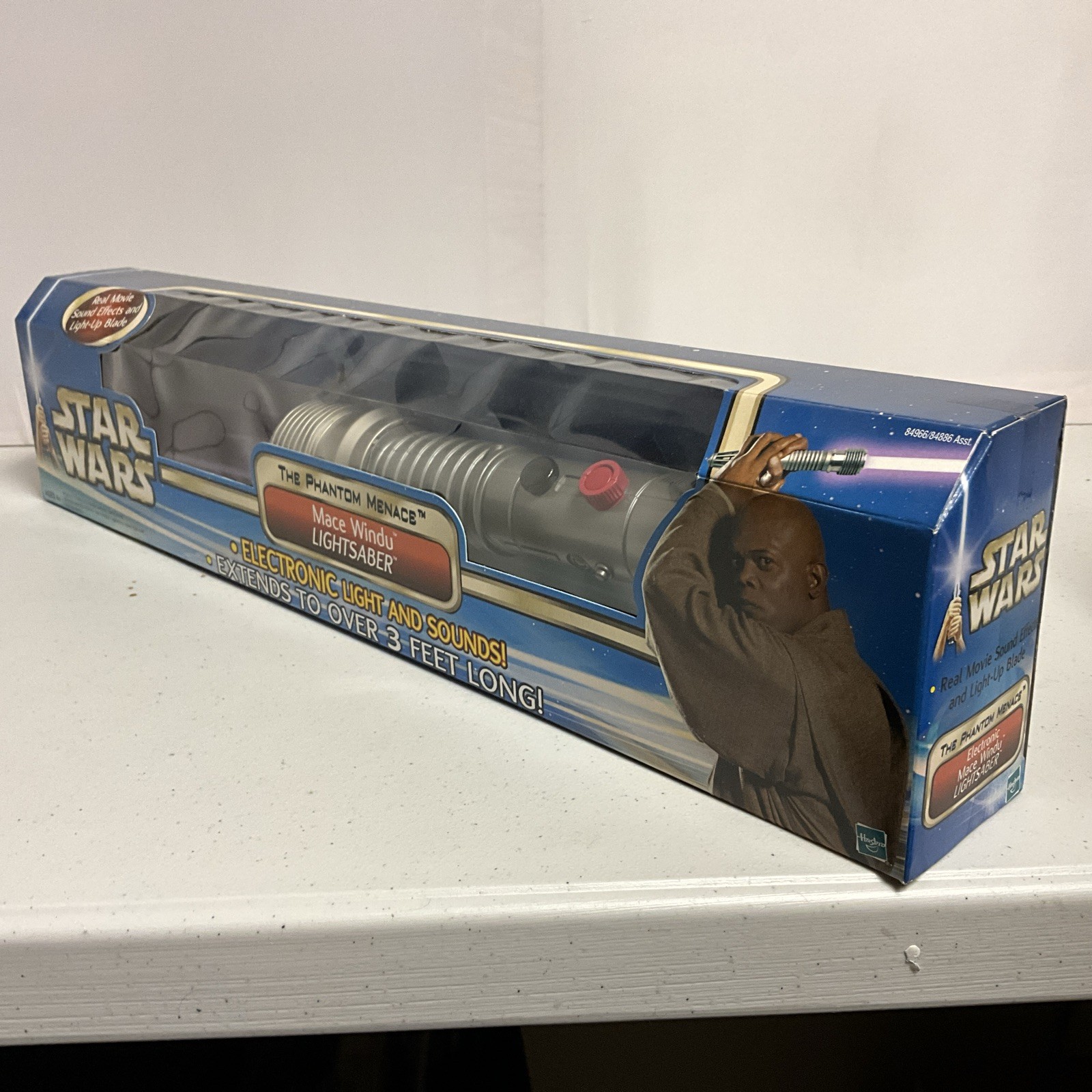 Star Wars electronic lightsaber Mace Windu The Phantom Menace NIB 2002